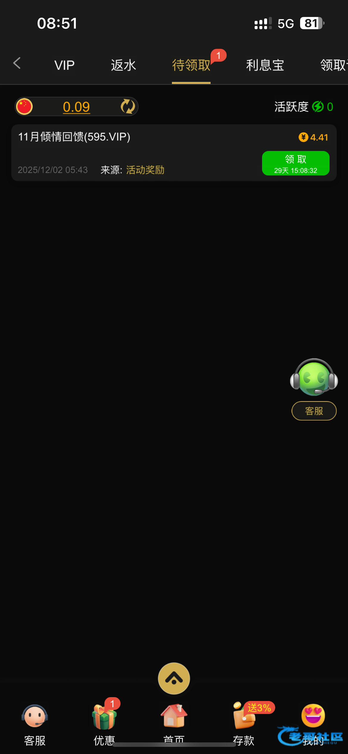 充过100,没有