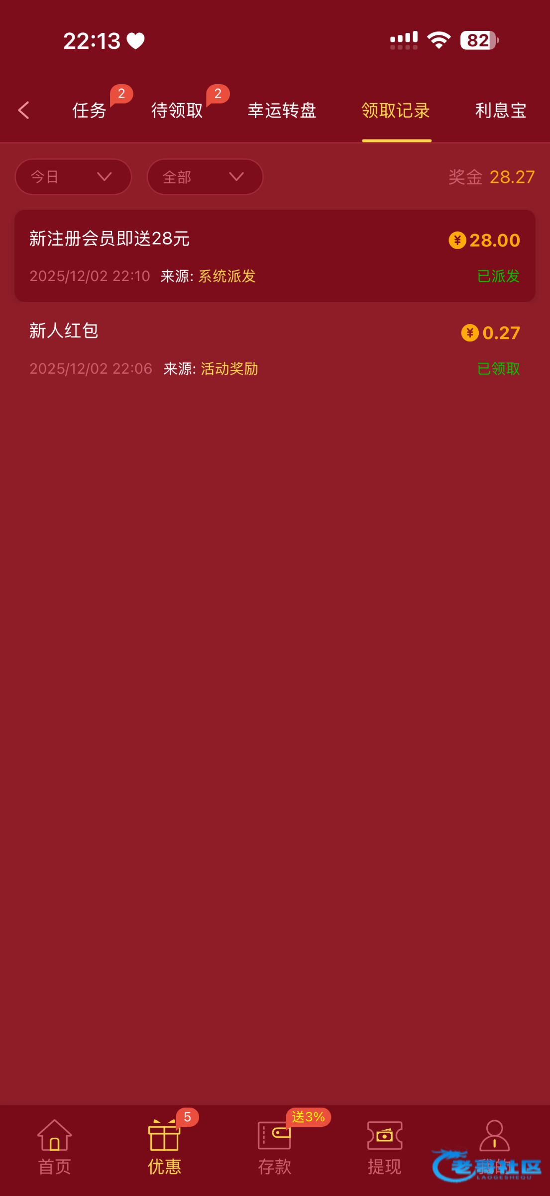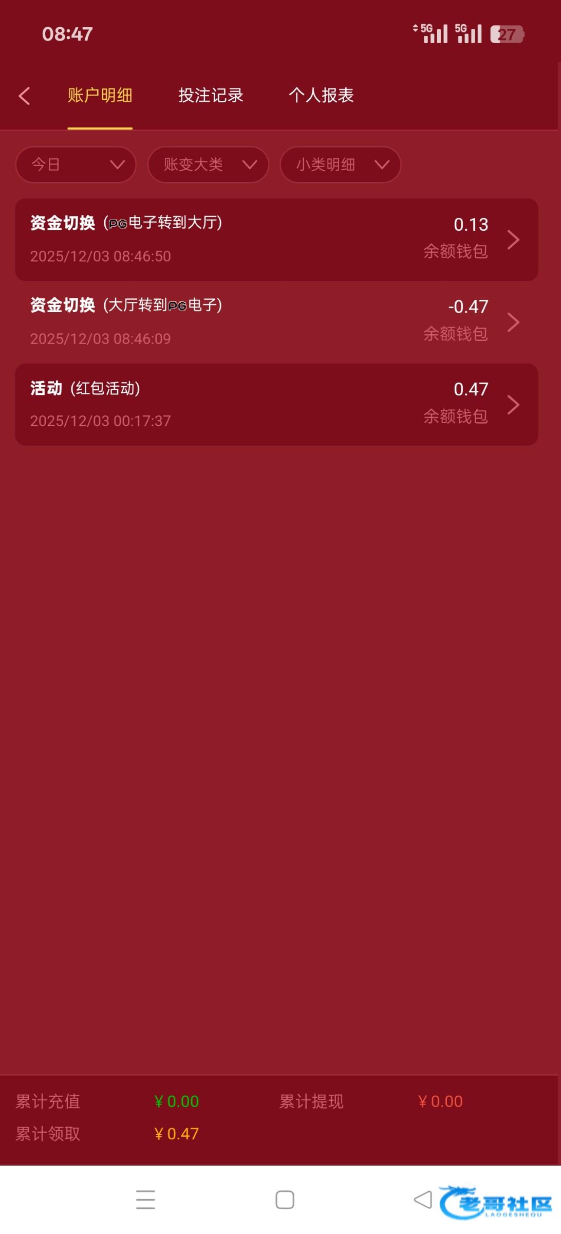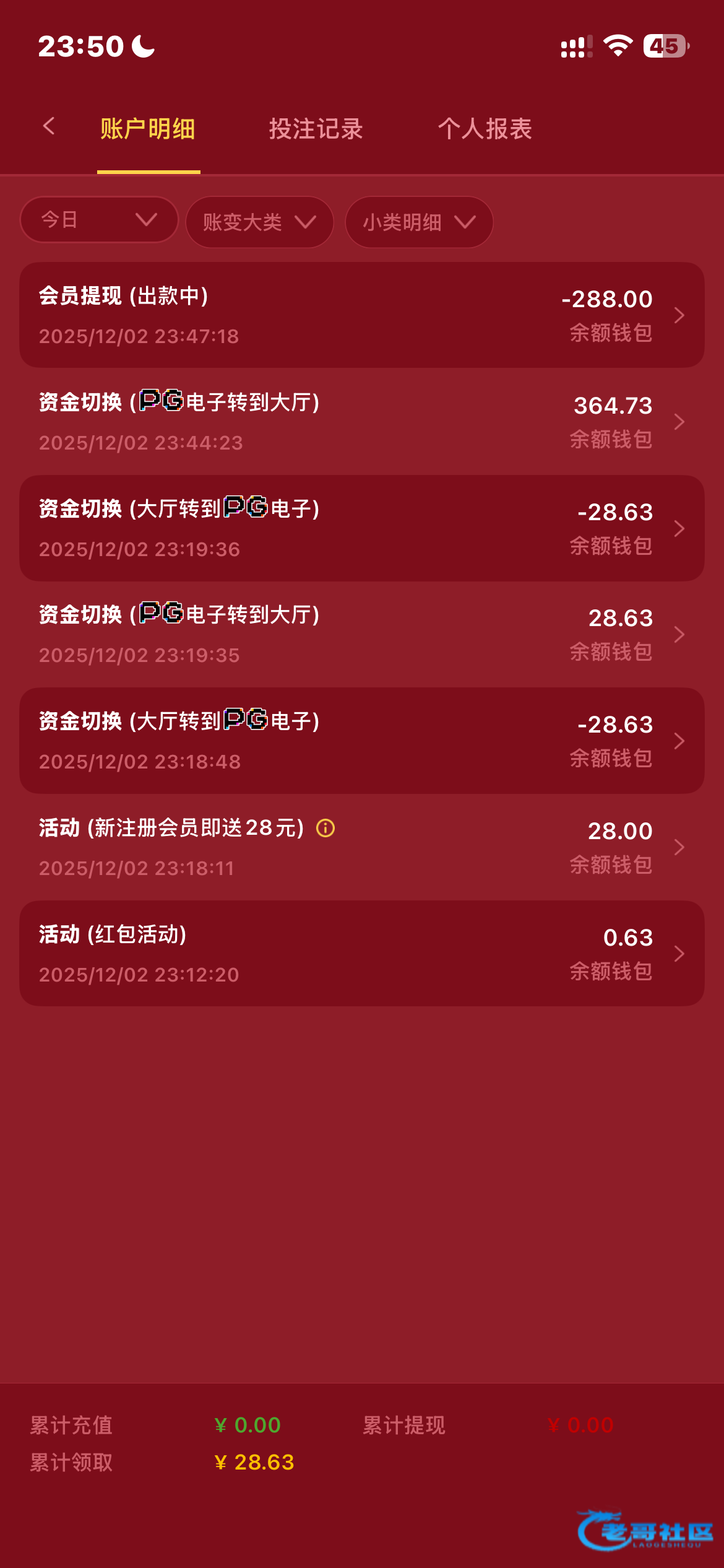 领到了没打出来28打了40多流水