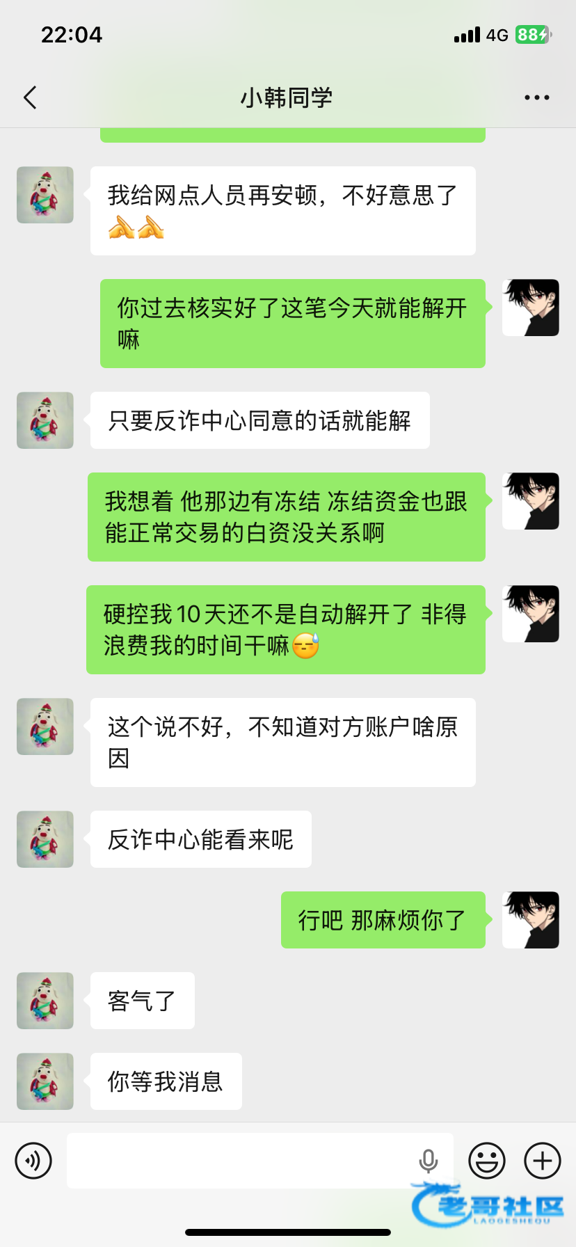 我打电话给银行 他说可能是冻结7天