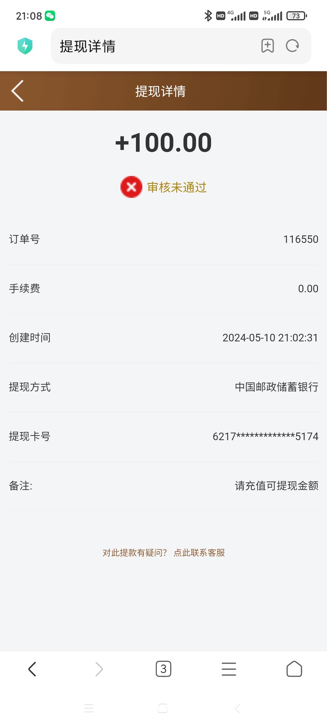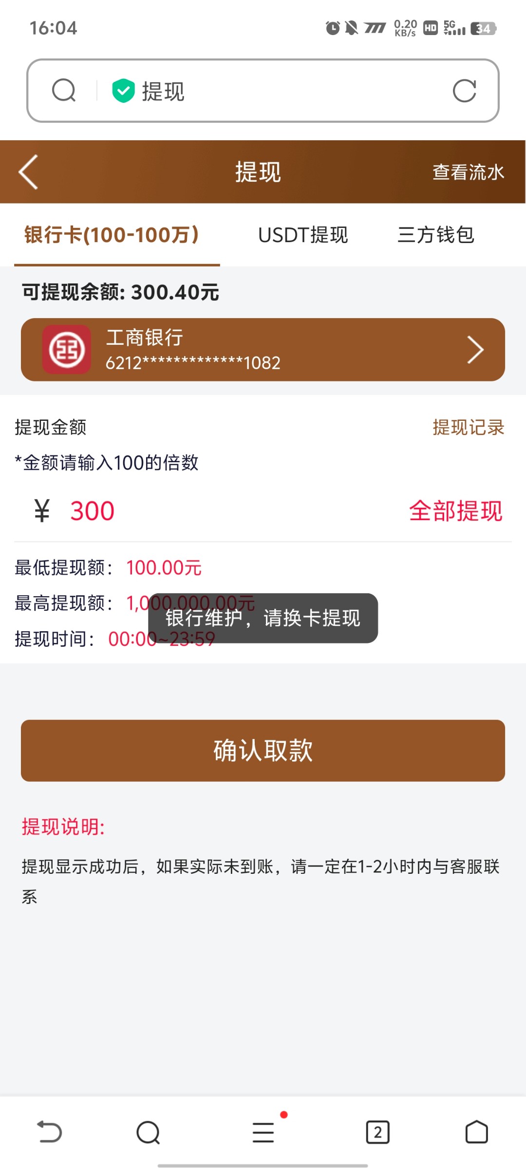 你的300到了吗? 我都是不敢提三百,提的100到账,不过再提就要充值了