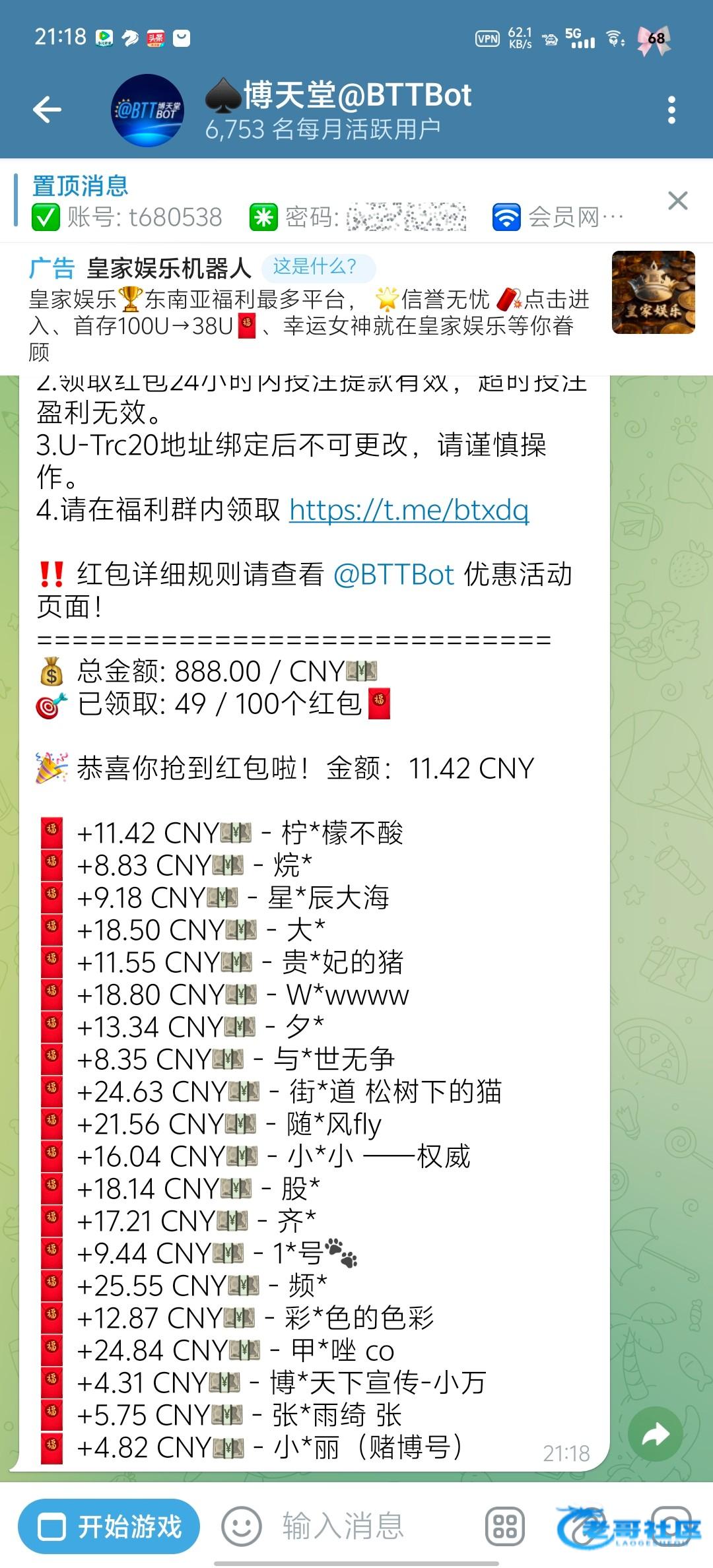 博天堂又发红包啦。兄弟们快去。还有50多个https://t.me/bttflpd