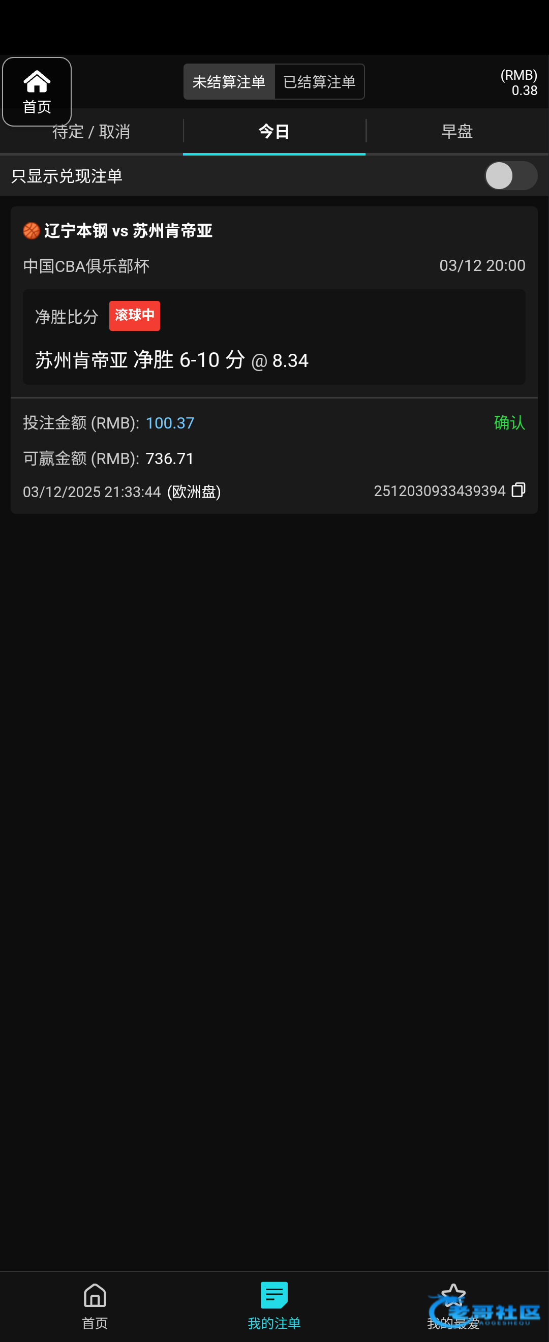本来今天下午玩nba跟nba把前几天赢得九百块钱输完了,下午来个了四亿彩票的短信撸了一百六,留六十吃饭,剩下一百刚才冲进去,看这俩队历史最后一节都是穿盘,第四节中场追到落后一分,买了赢6-10,后面一看真反超赢了7分,天不亡我!