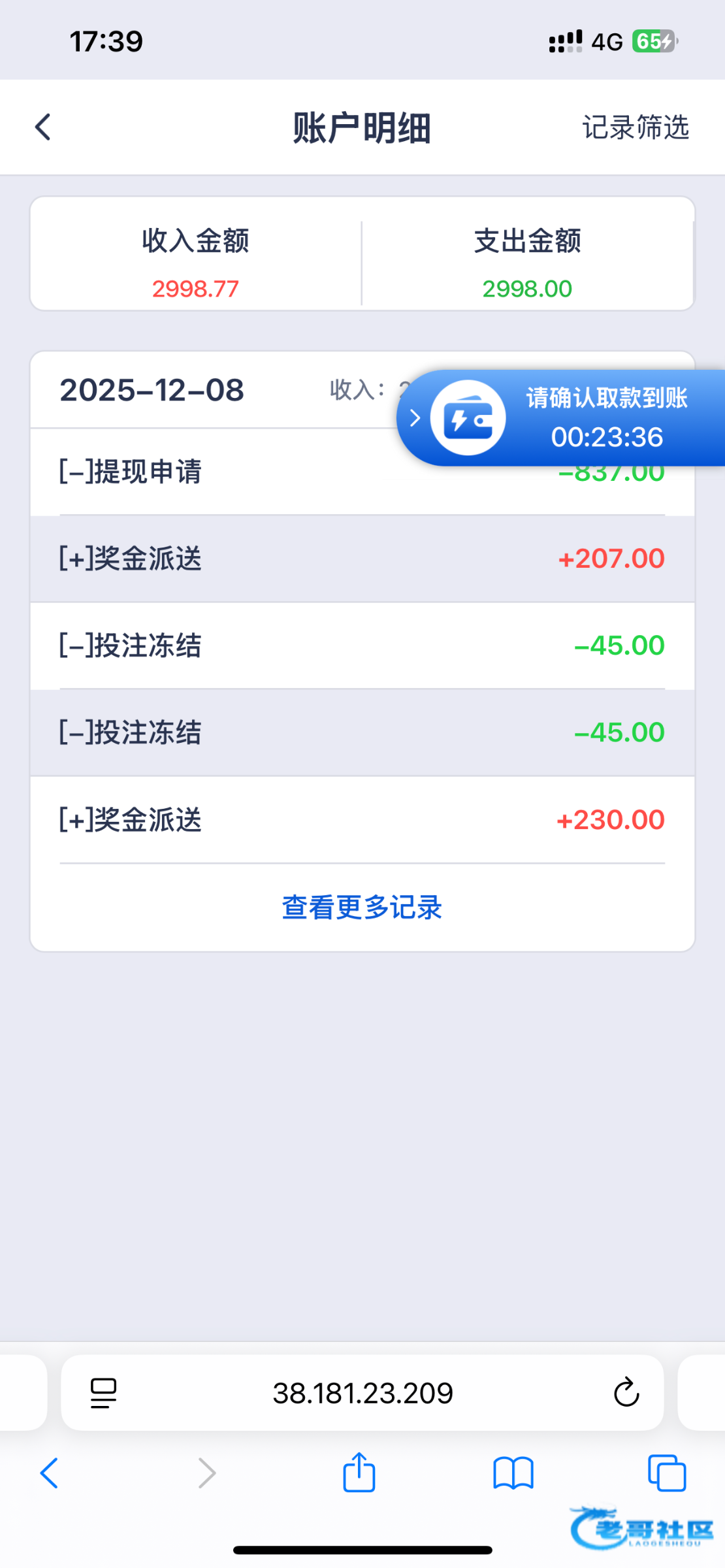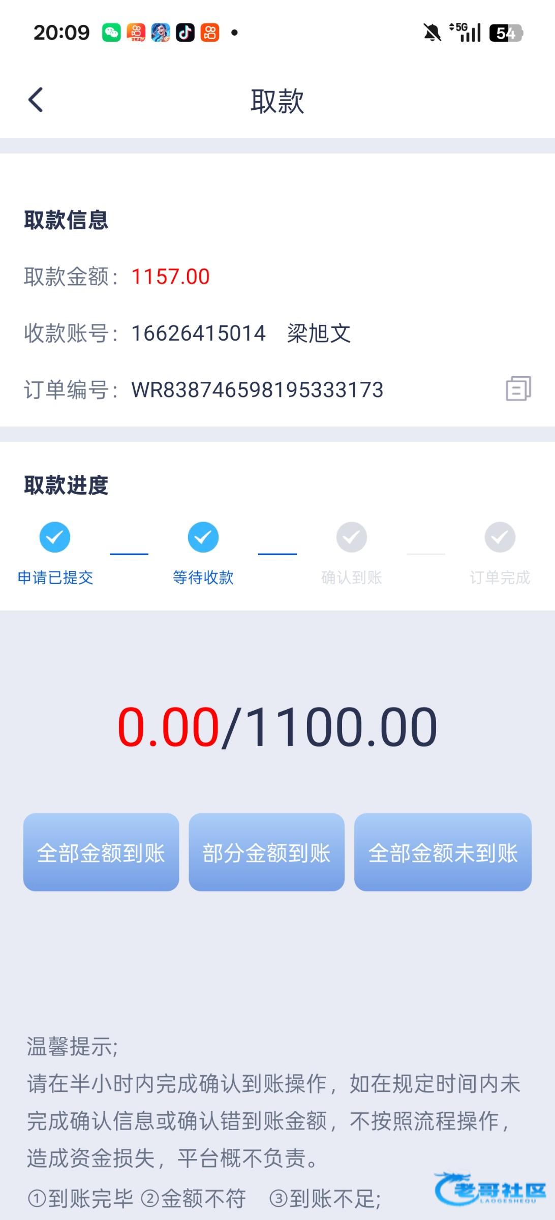 提现到账了,tjf888