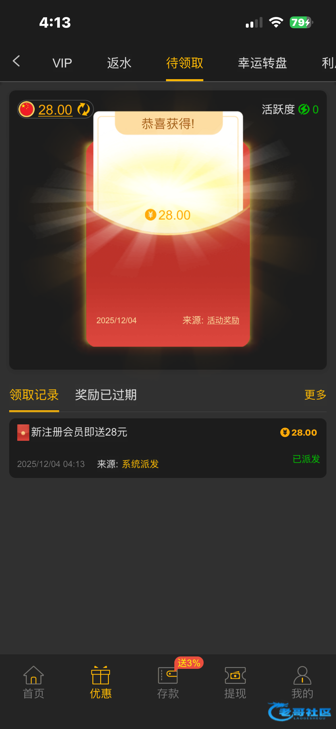 发了没送,这个不是所有人都送,活动规则里面说特邀