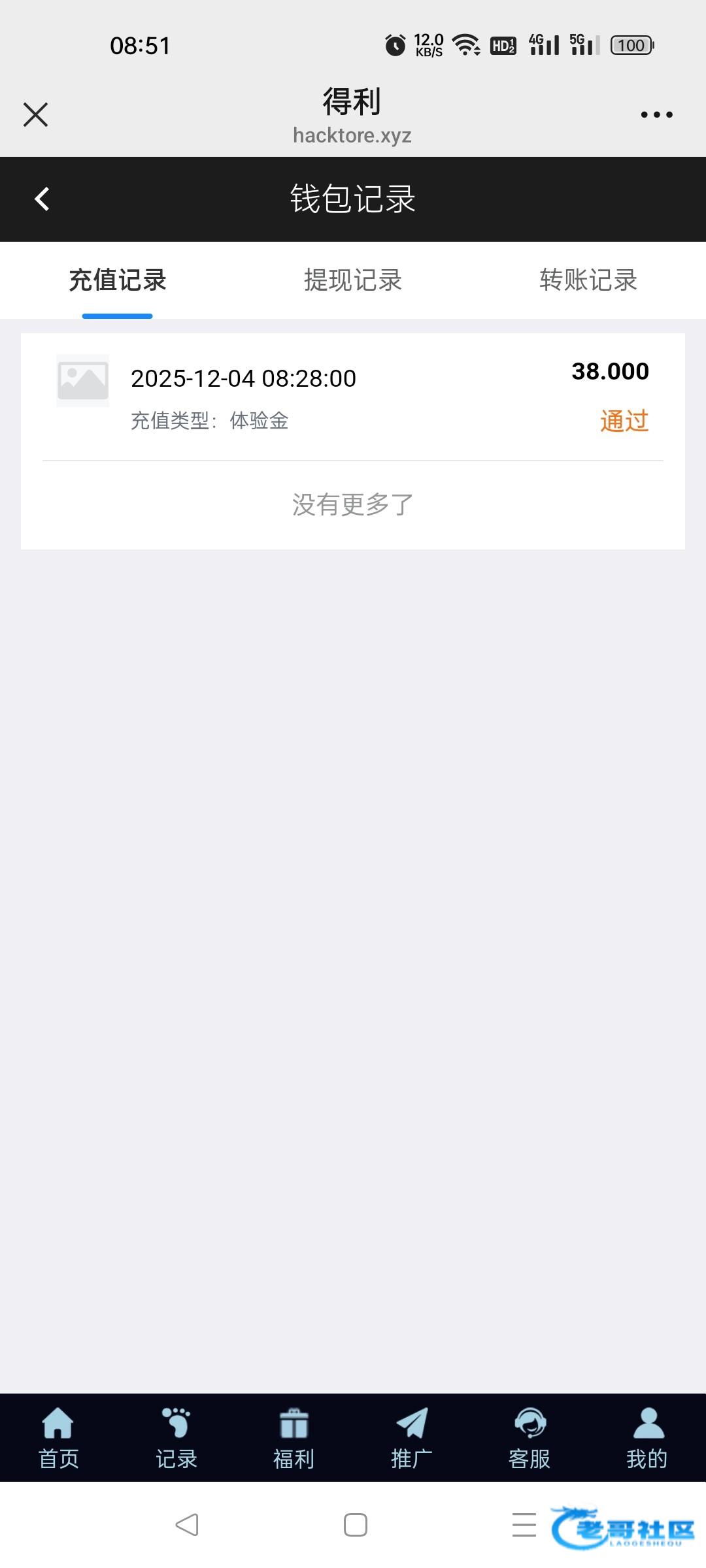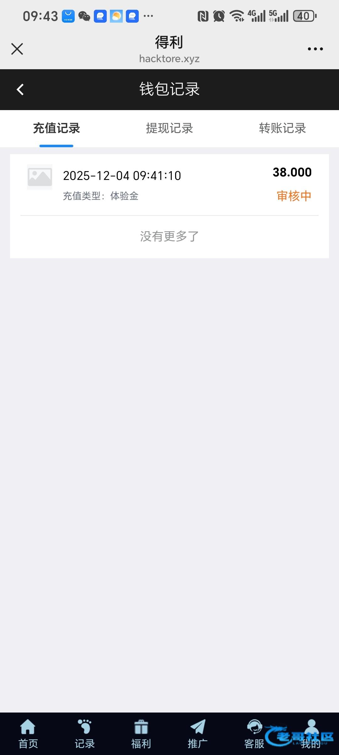 扫码进去点充值哪里领取38体验金,5倍流水下38,已到账
