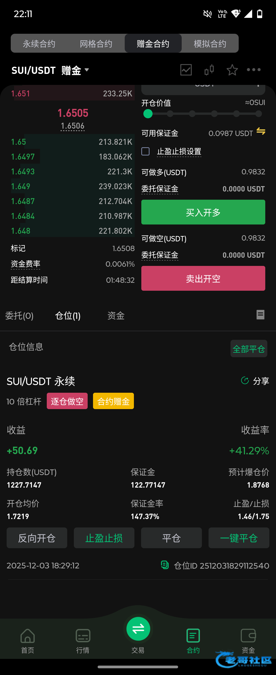 我做空的ltc,我还是在最高点入的最高给我赚70几就一动不动了,我真的要红温了