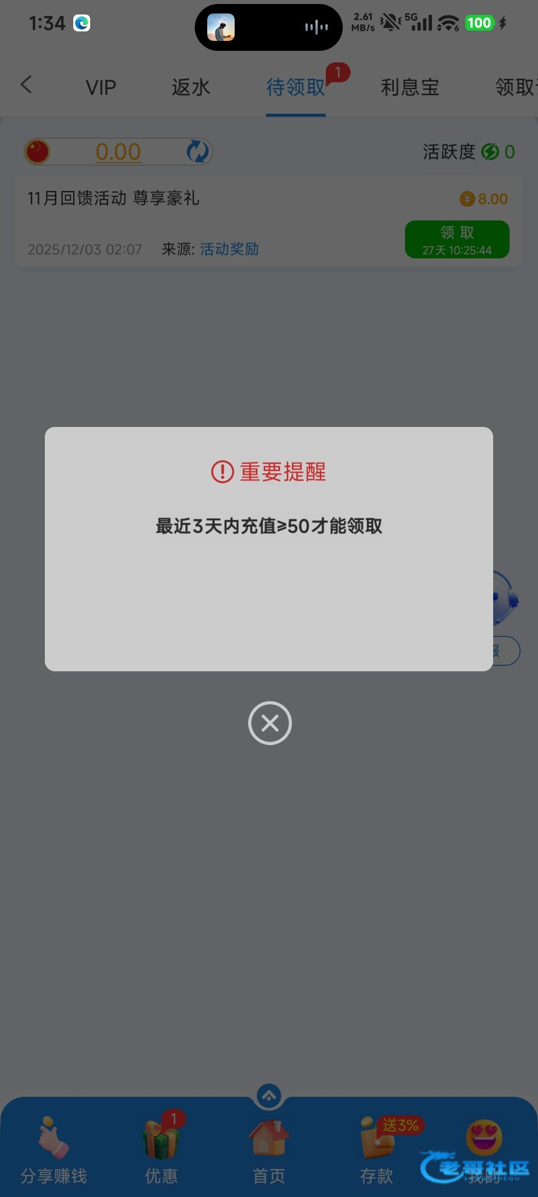 要充值五十