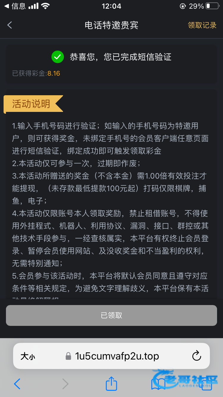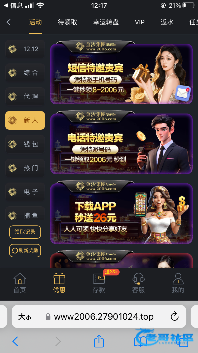 现在可以领两个彩金不知道为什么进去绑定手机号领一个收验证码再领一个,链接www.2006.com