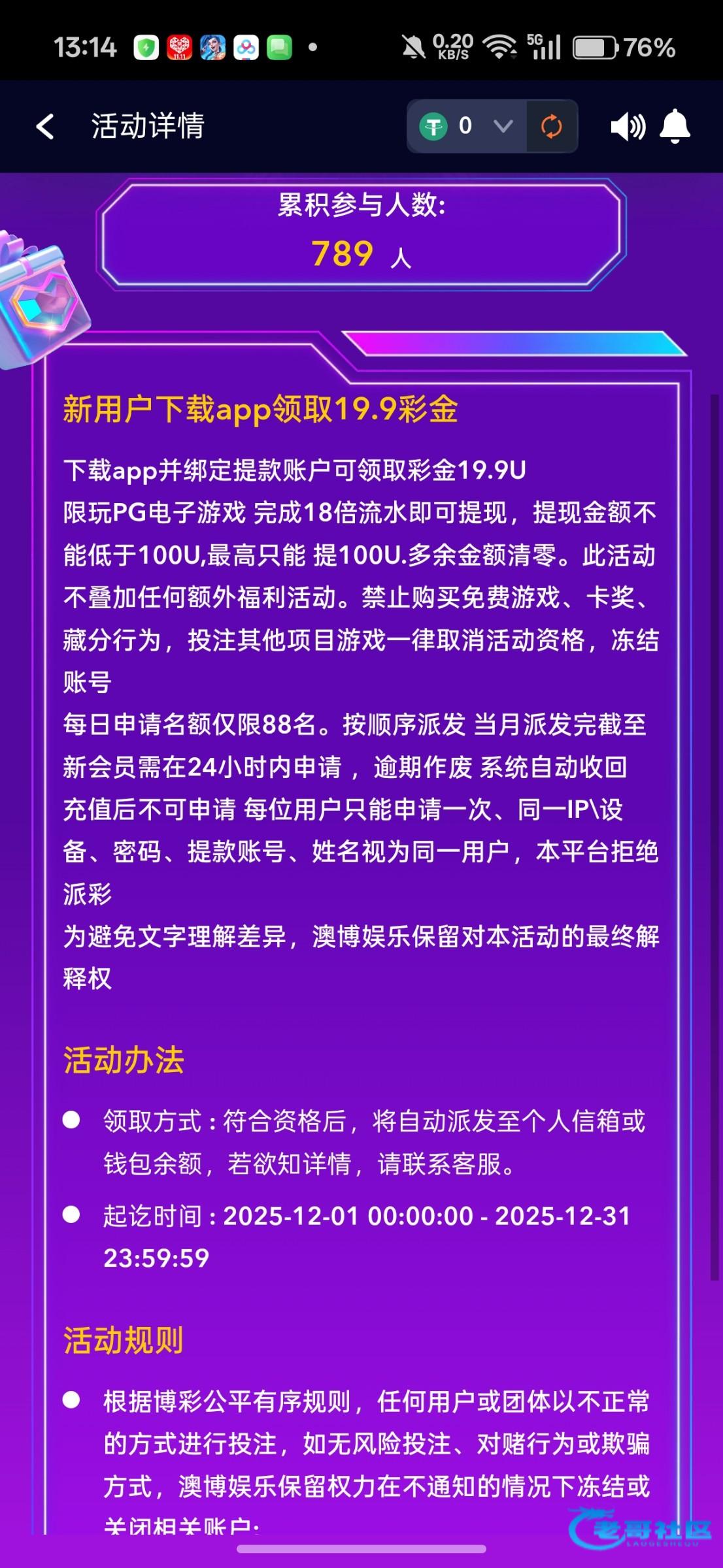 奥博送19.9u大毛,最高最低100u提,18倍水,360流水,注册绑卡申请。我没打出来,链接https://ab8f.com/