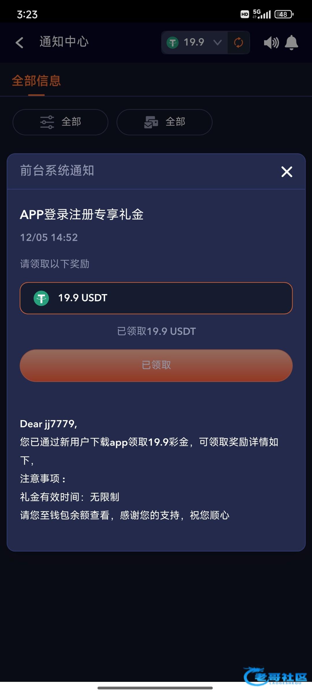 第二个号领取19.9u,注册绑定卡,u地址,等一会就送了
