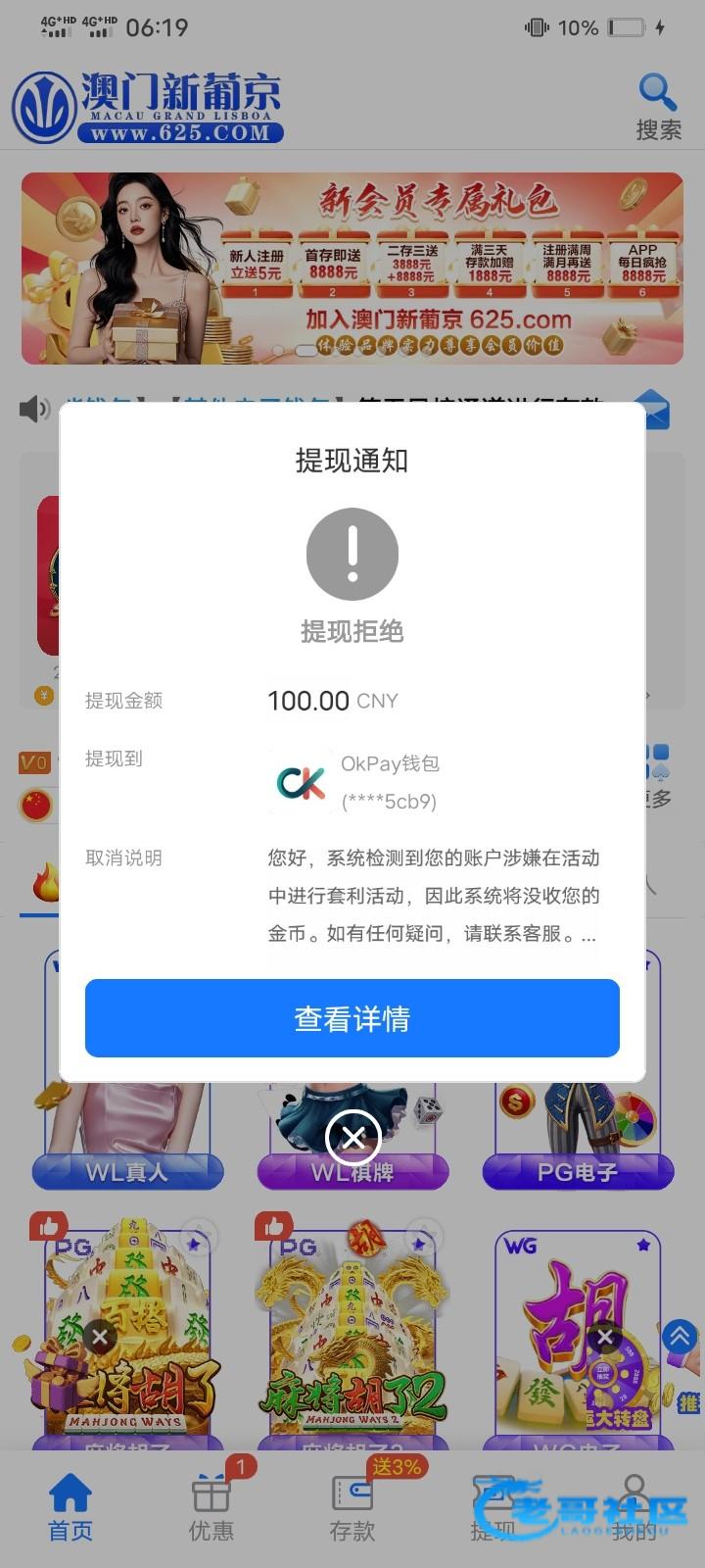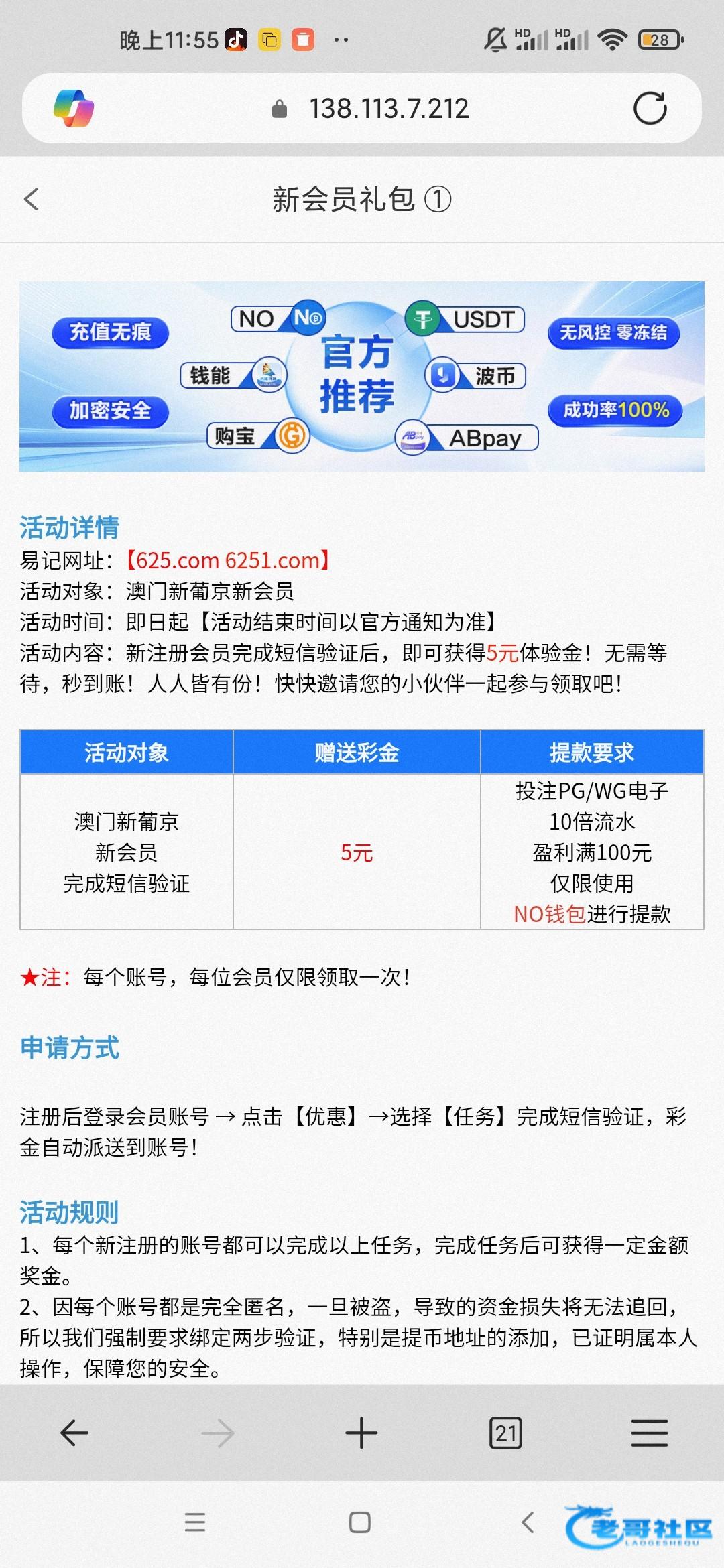本来这种没什么值得去发的,但老哥网的赌神见识过,不得不服。注册验证短信就自动送5了,100提 赌神去就好了,下载app也有18彩金具体上去看
