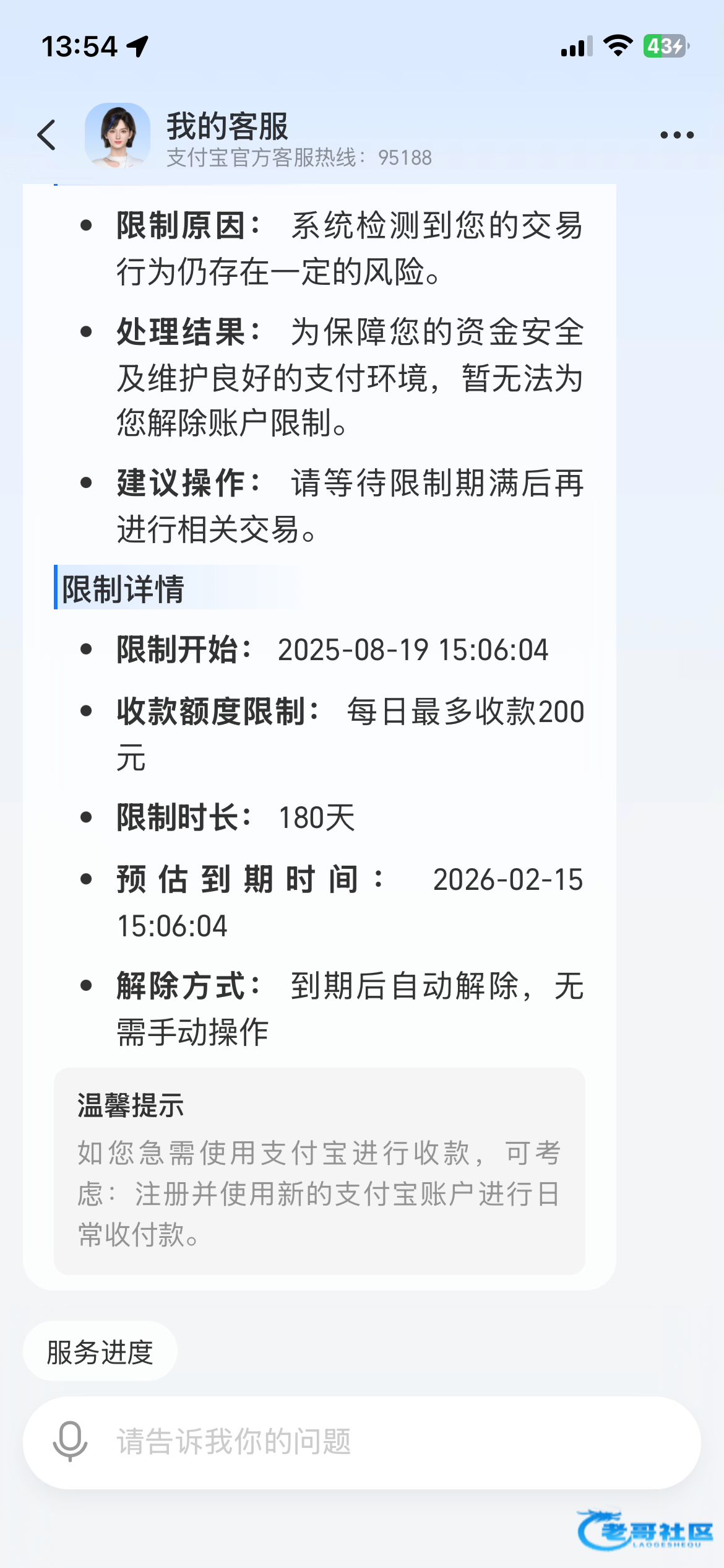 我之前收款也是老封7或者14天,自己搞了一个朋友借钱的聊天记录,很简单就借钱发收款码给朋友,申请解封过了,现在基本天天收,没封过
