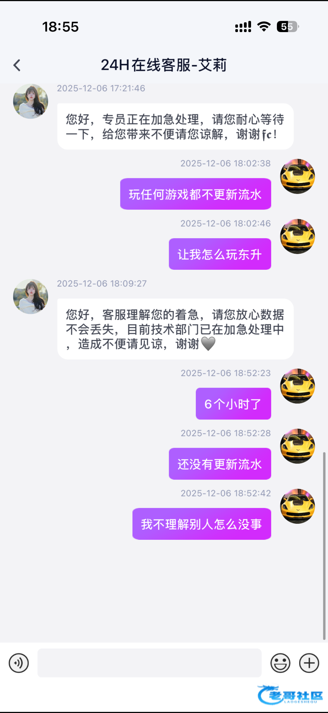 今天流水不更新客服一直让我等都半天了,一下午了