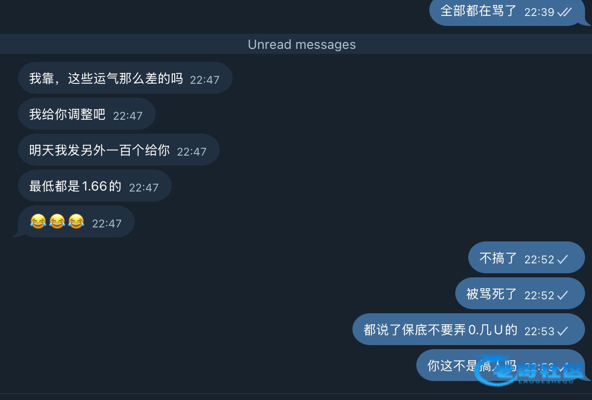 统一回复:看反馈都是0.几U的估计又特么忘记设置了吧,浪费我时间,下午5点的时候就给他说保底弄2u的又忘记设置,老子还特么手动发代码200个骂人去了,0点几U抽奖什么服了,当赌神项目弄了赌神们上吧