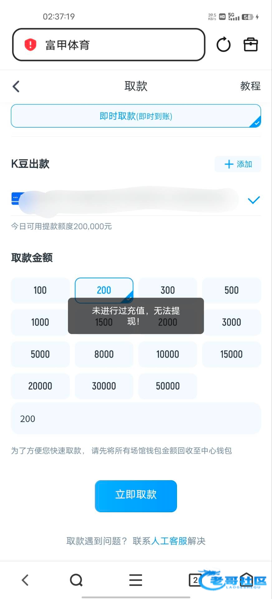 打到200没充值不让提,能不能冲?