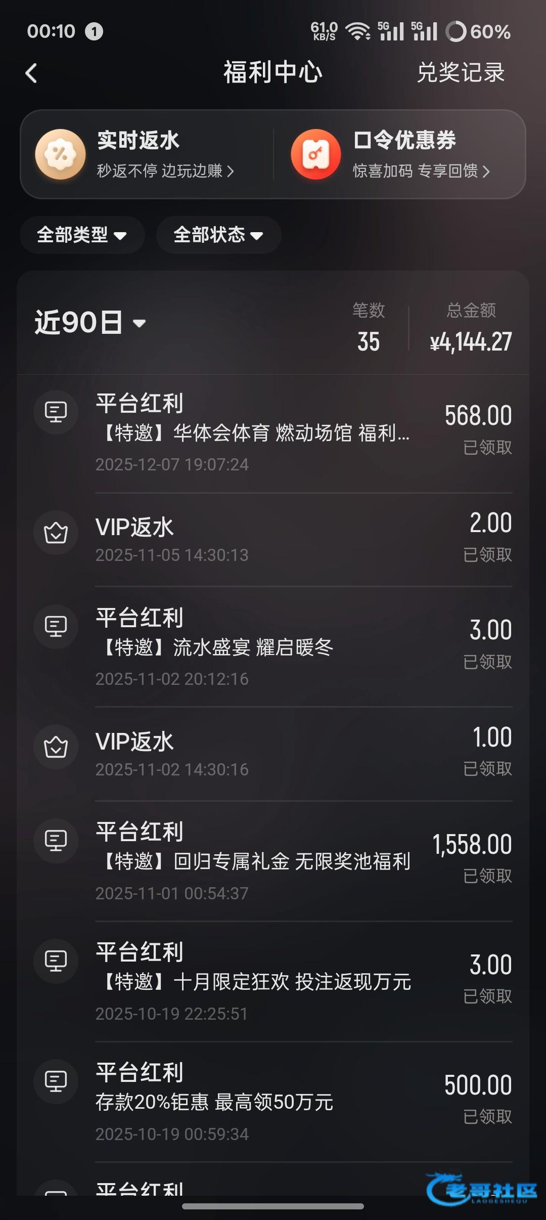 昨天hth v5号送卡568 找客服登记今天应该还可以领1000多,就是限制本地电子,昨天还好磨出来了,磨出来存500回去申请500 (v5会员百分百存送)打出来4000 大家有号可以看看,不要到时候浪费了。