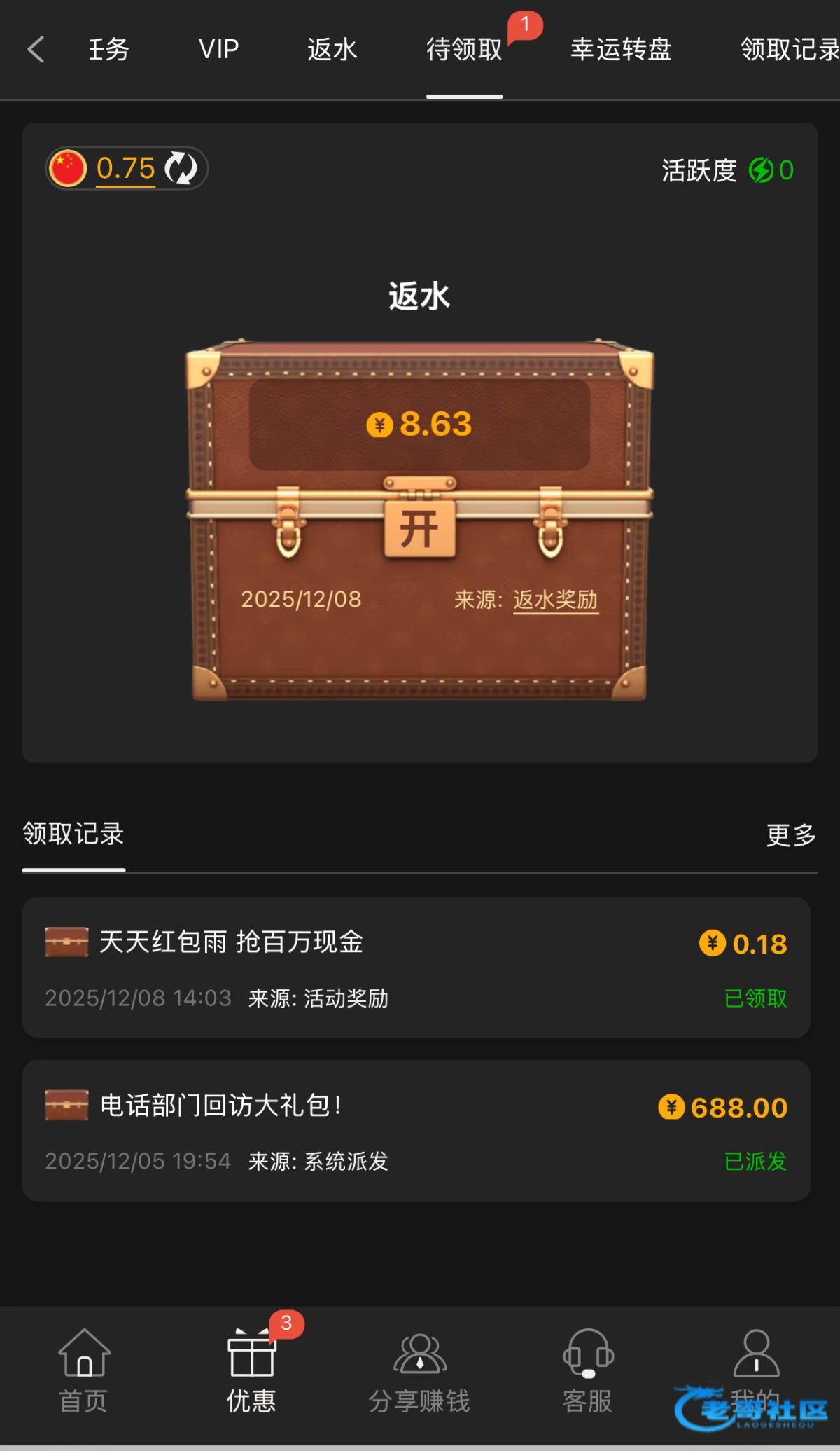 看到帖子上号看了一下真的有388,电子没什么水打够一杯流水就提现了