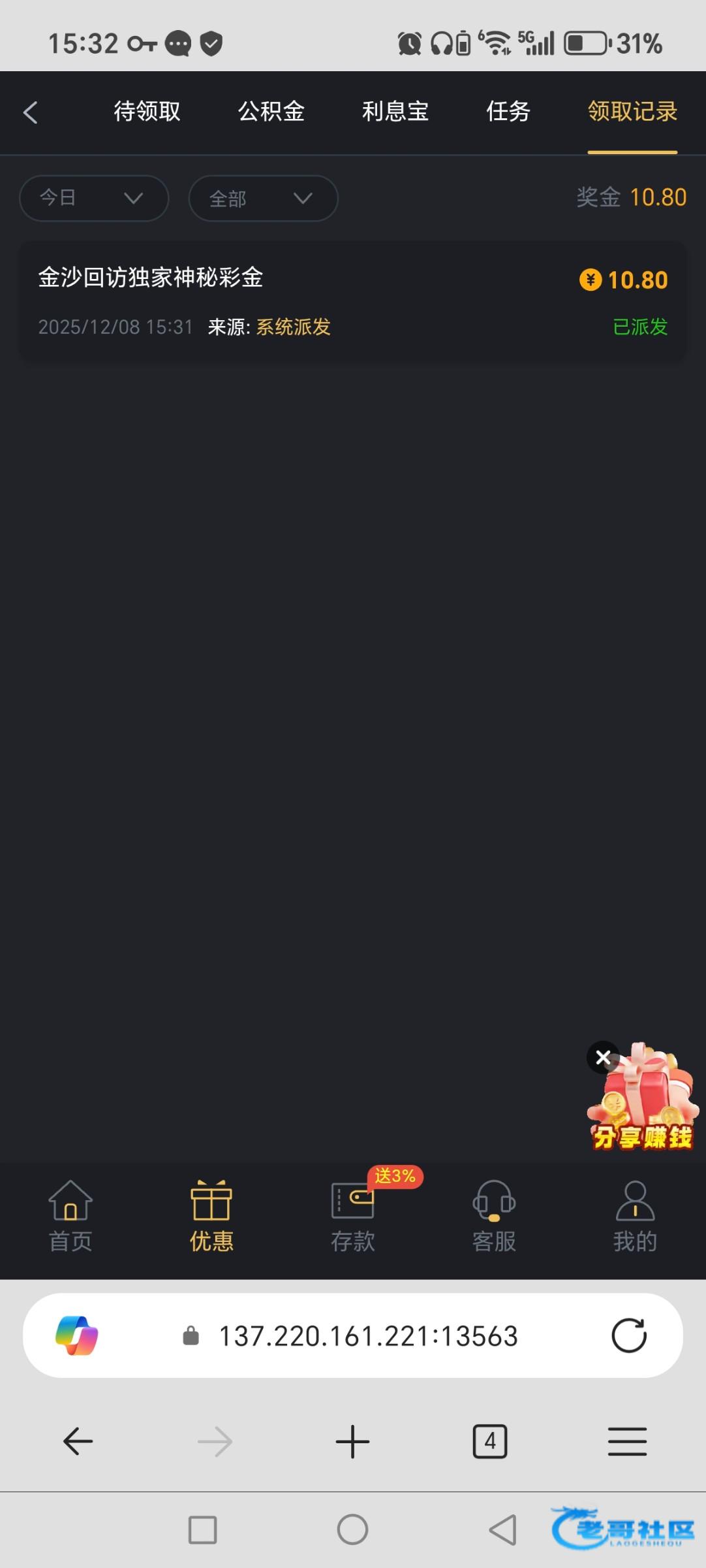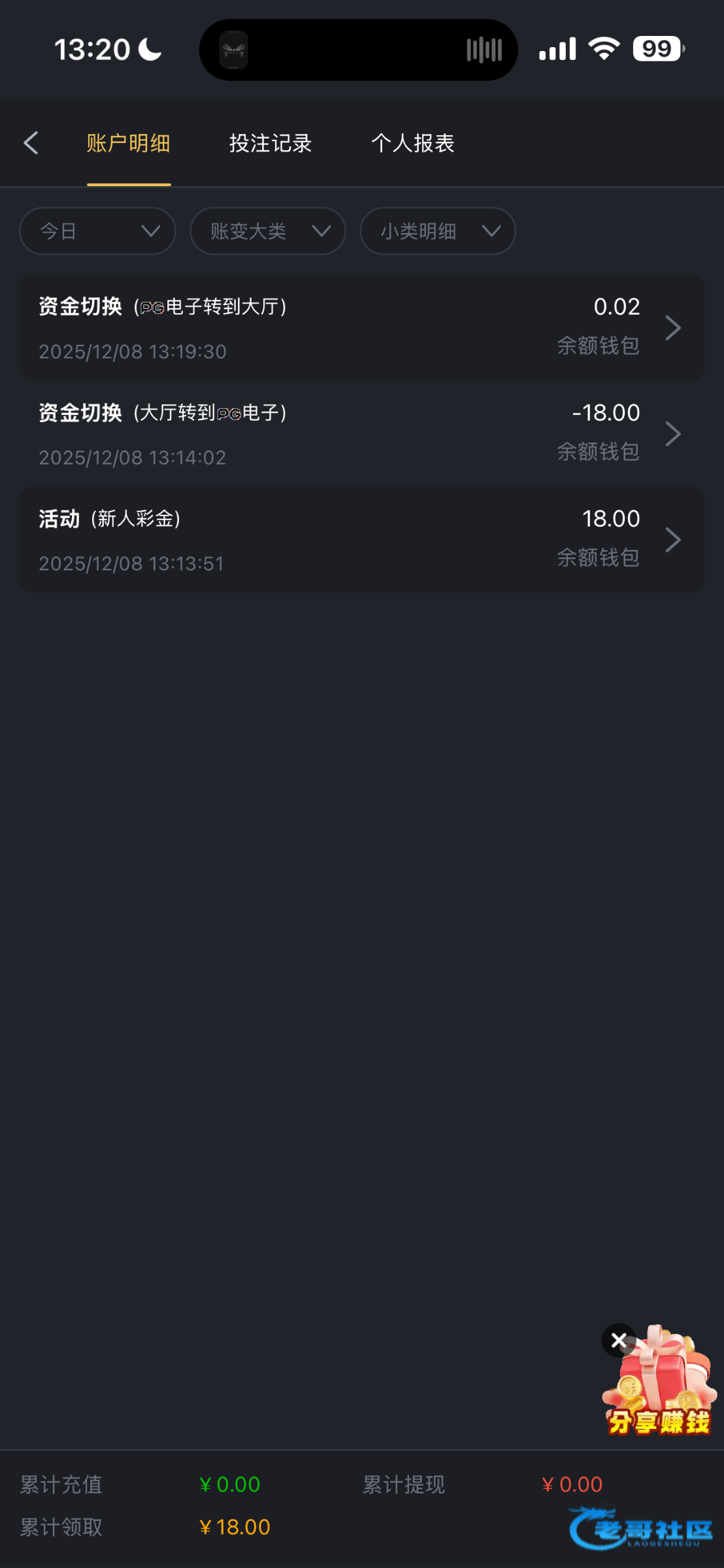回馈了6块