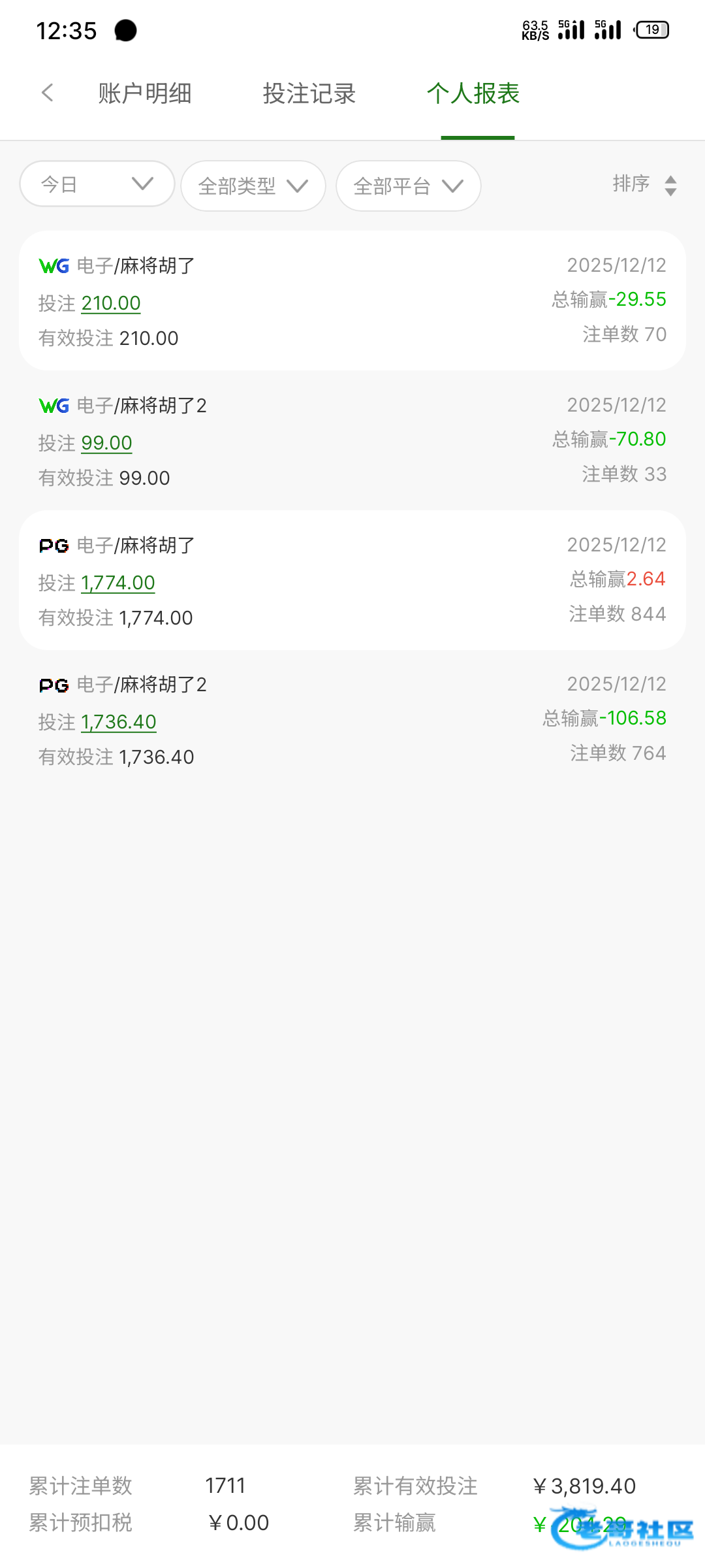 老看评论区有人说大水。。。我这个台玩了20天左右 天天打博大一次没成功过 特别是wg那个赏金根本不给分。。。累计电子输了1w1 电子流水3w5