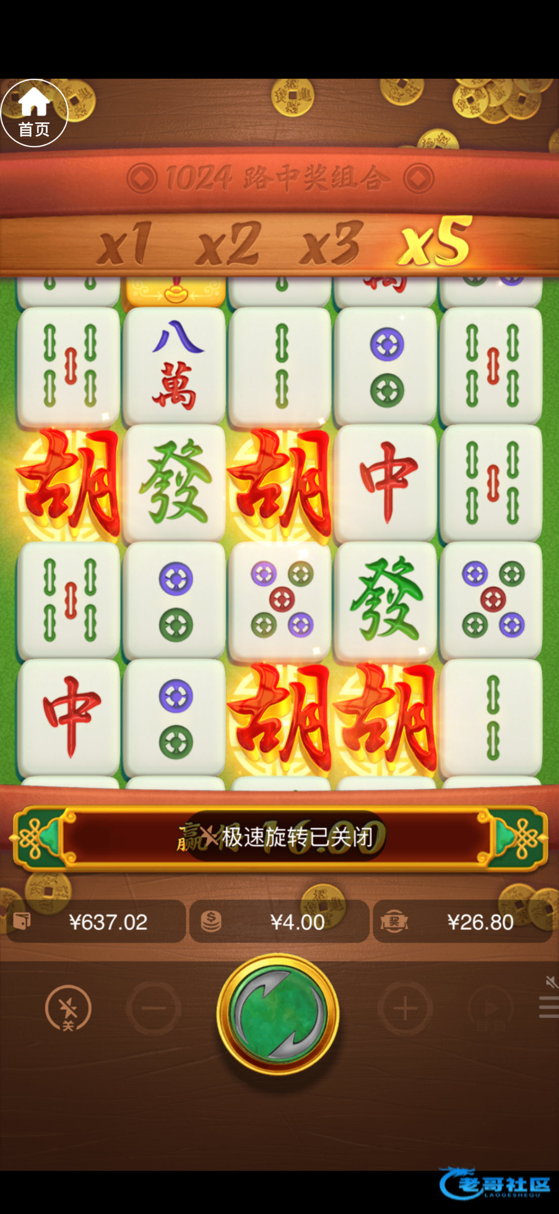 没见过100倍,进胡,唯一一个100是4毛,也是牛逼,进8块钱4/2胡全是20/30倍