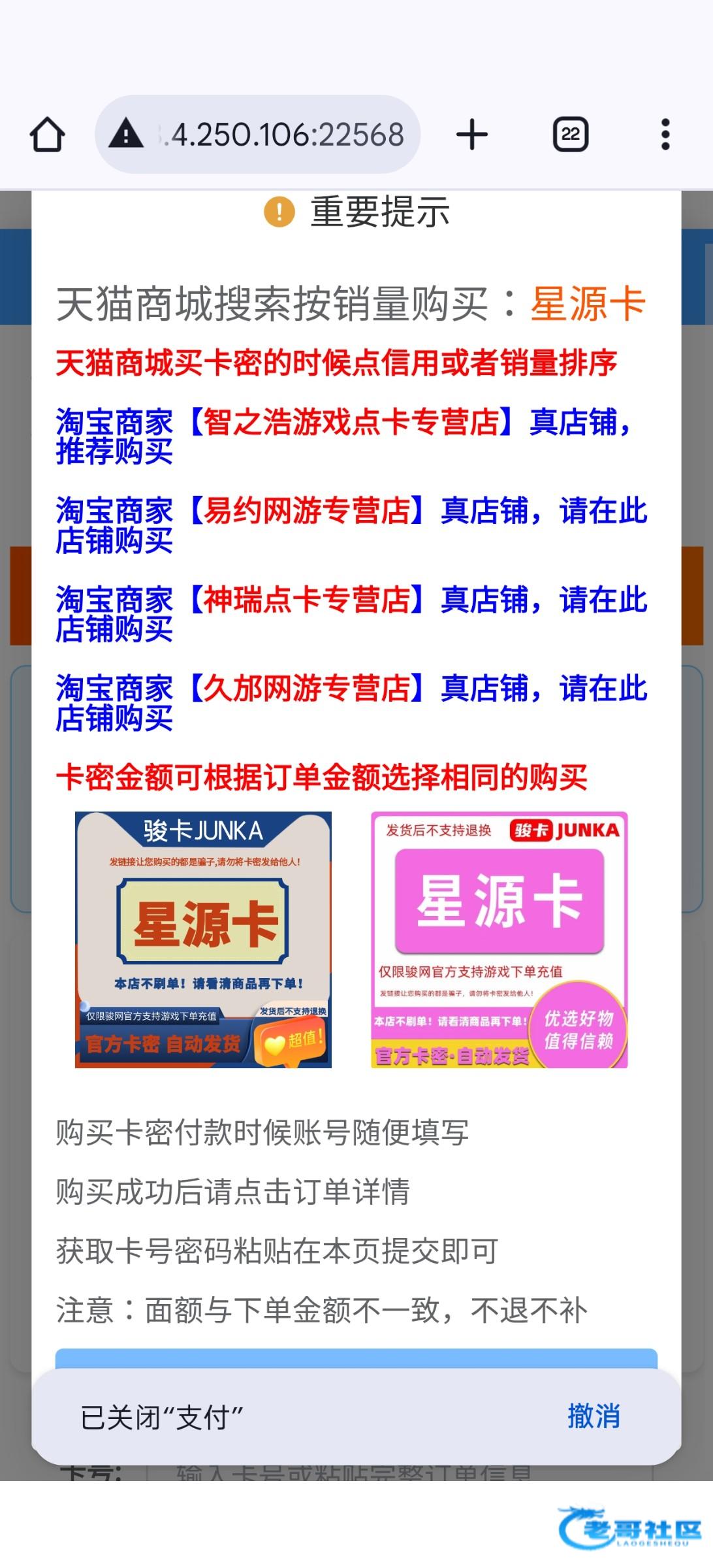 没看通道好不好用直接买了100卡密,结果通道不能用了,找了好多台都用不了,骏网星源卡