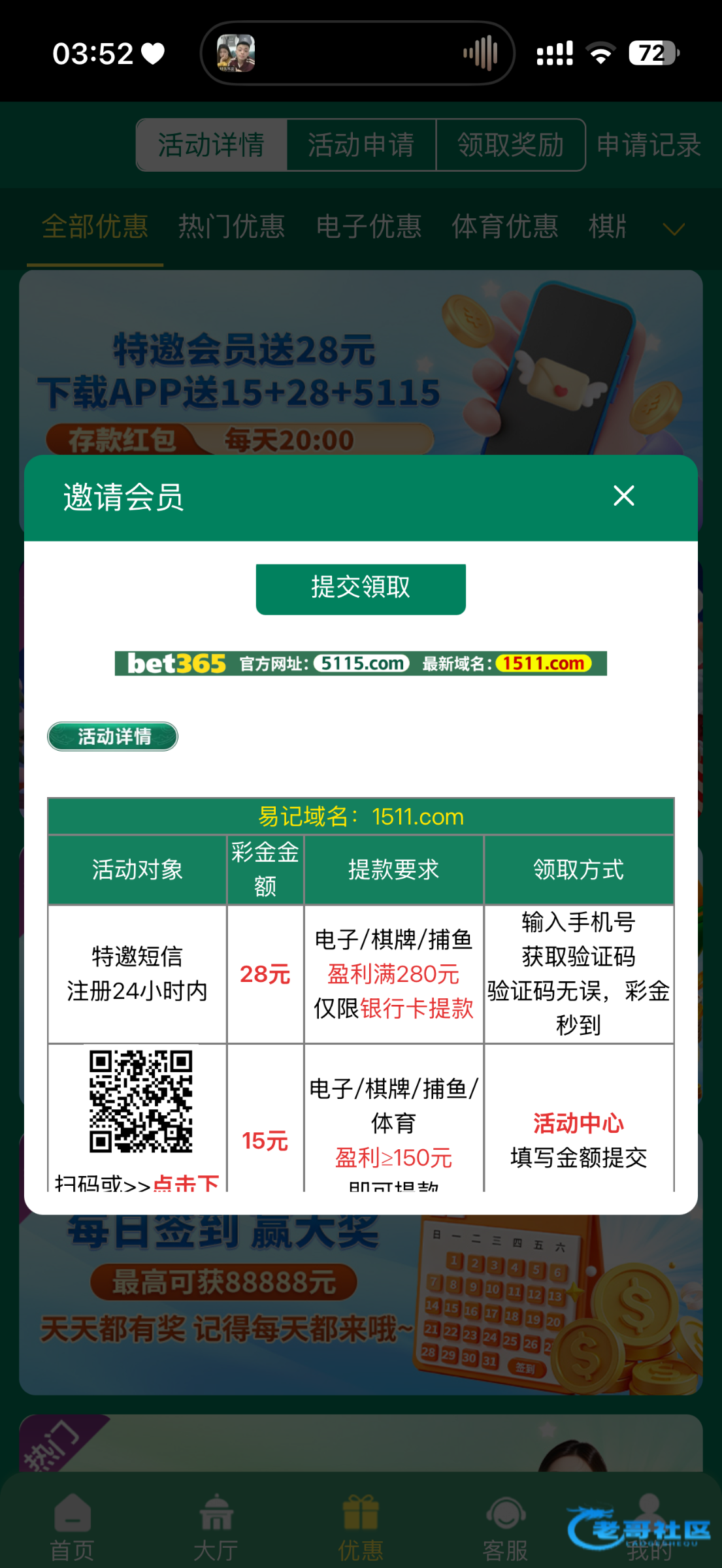 估计是个手机号都送我两个手机号都给了之前没见过这个活动 还有app彩金15