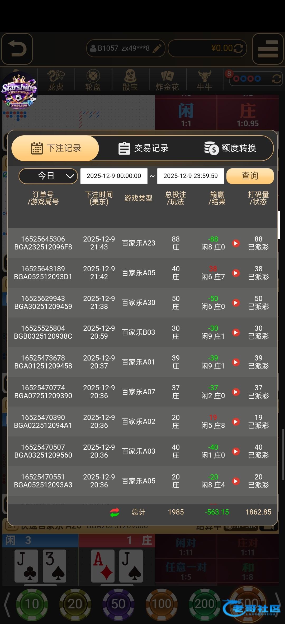 这种就是一个桌台开闲(或庄),很多都跟着开闲(或庄)防着有人来回跳盘去追庄(或闲)曾经j9那个赢千万的就是均注ag所有台子都是庄(或闲)赢得∶而后被ag抓到打法又给它全吃回去了