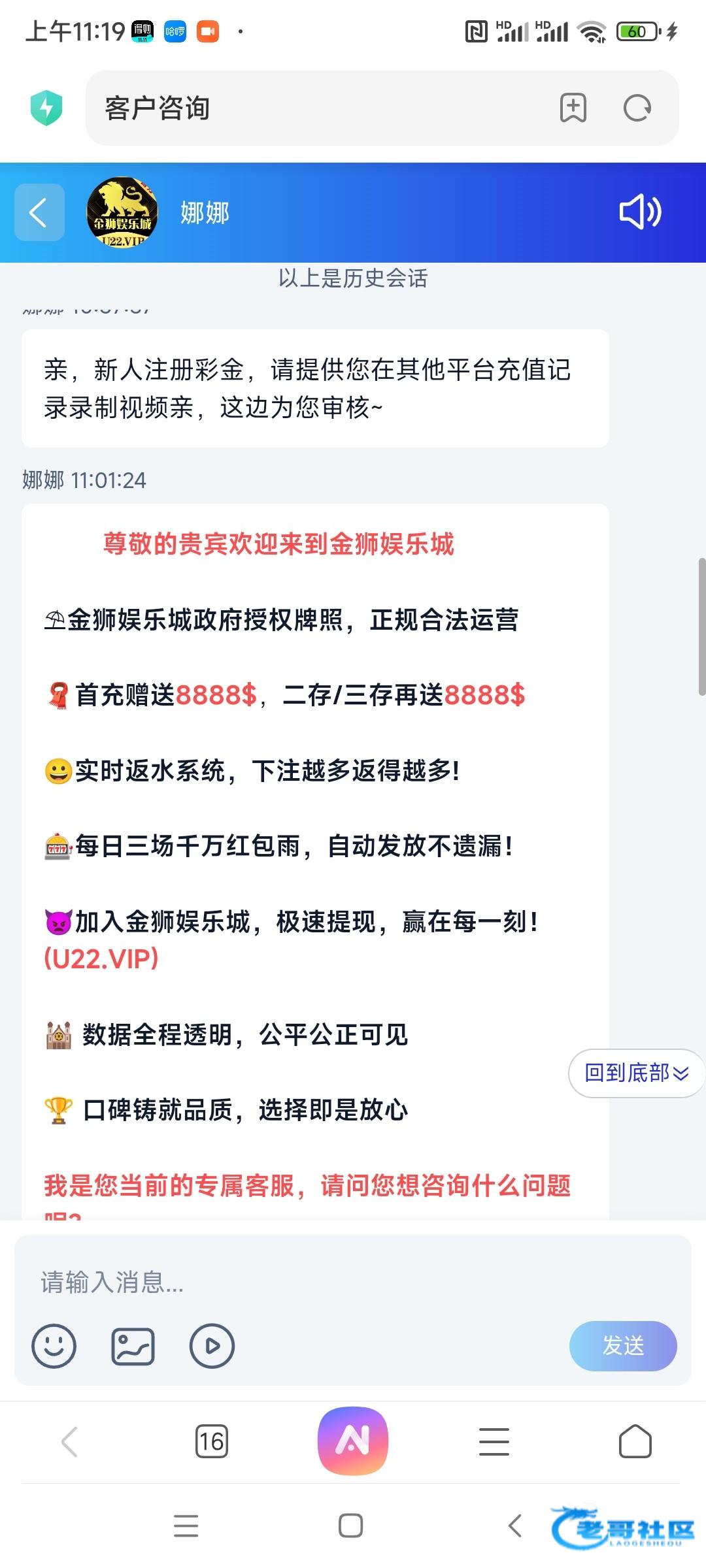 首发注册好找客服说申请注册彩金,会让提供其他平台充值记录之后给你送,我送了18没打出来链接u22.vip