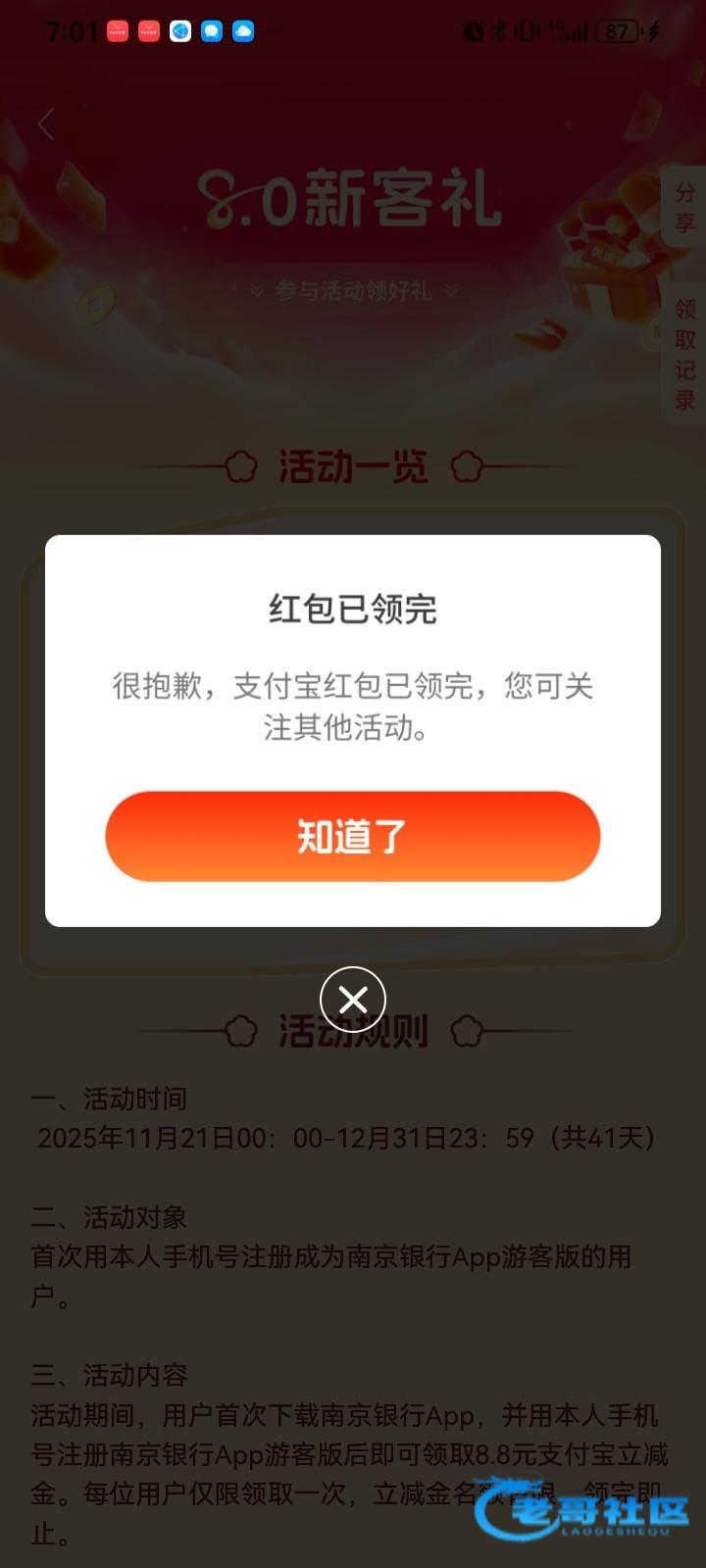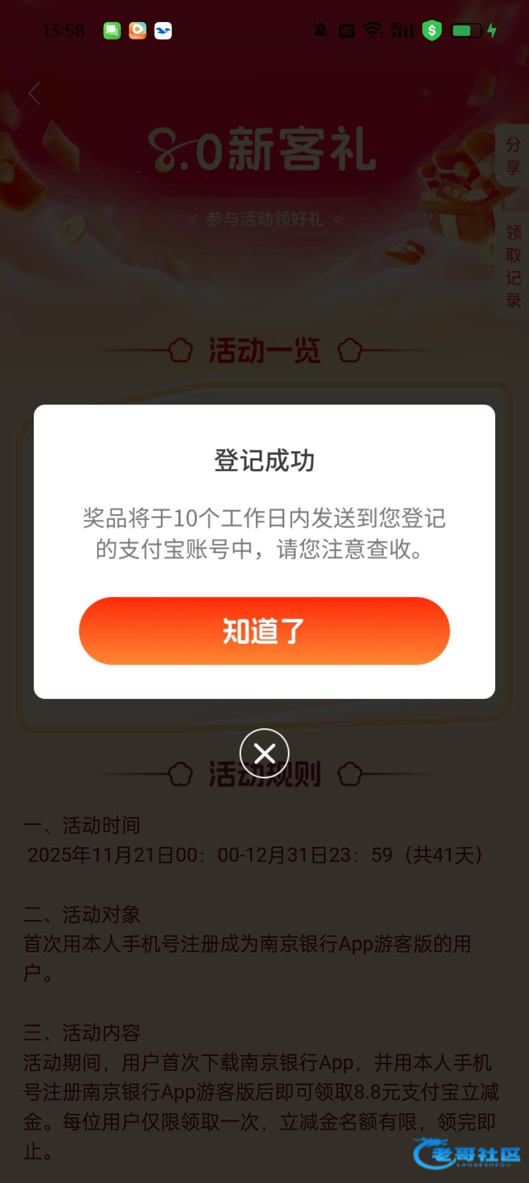 应用商店下载南京银行 没注册过的,直接去注册,注册之后它会自动跳这个页面进去输入支付宝账号就行了,不用实名认证 等个两三天就到了 不秒!不秒!不秒!