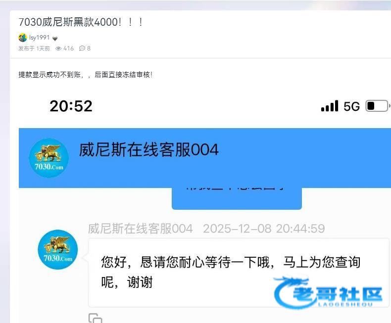 9030 正常充值100 提400 说账号异常 审核处理一天了 账号也不冻结 也不退款 不知道什么意思有懂的老哥吗
