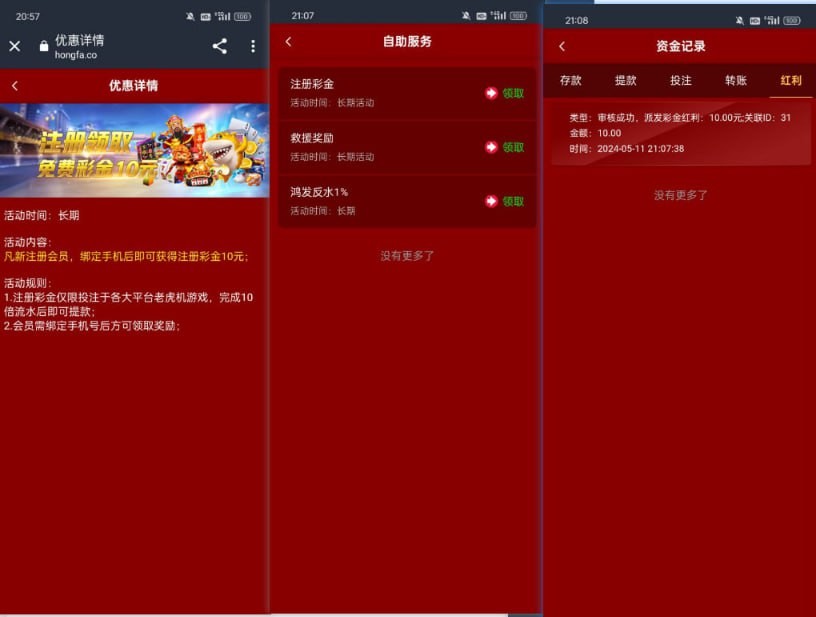 注册绑定手机号,我的里面自助服务申请新人10彩金秒到。邮箱特邀,看下有没有收到,收到找客服申请88彩金。