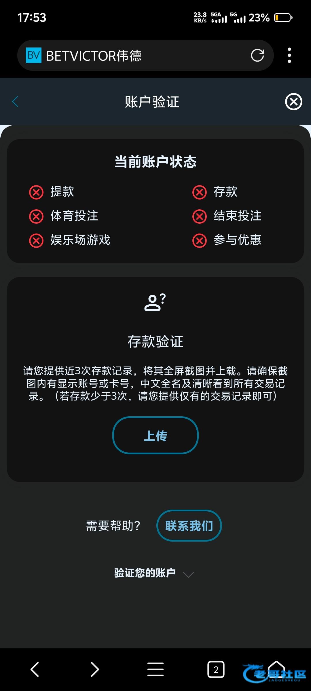 这没黑 只是怀疑你利用别人信息注册的 上传就稳了 电脑版银行截图发一下 我撸过伟德多号活动 传过给了