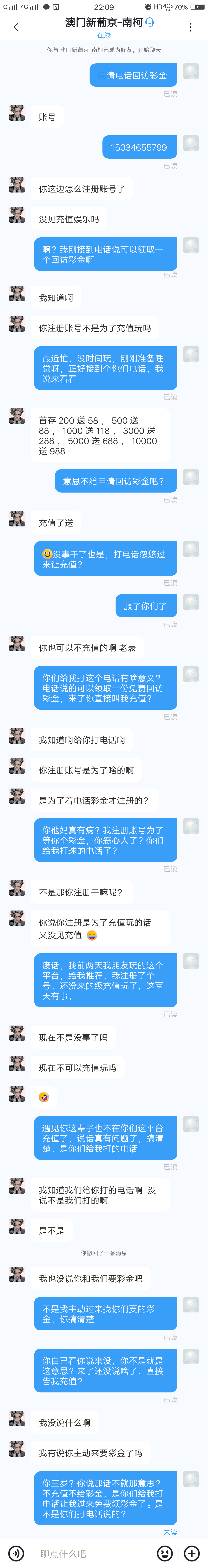 给我打电话让我领取回访彩金了,然后客服和我说这了,真是傻逼客服。