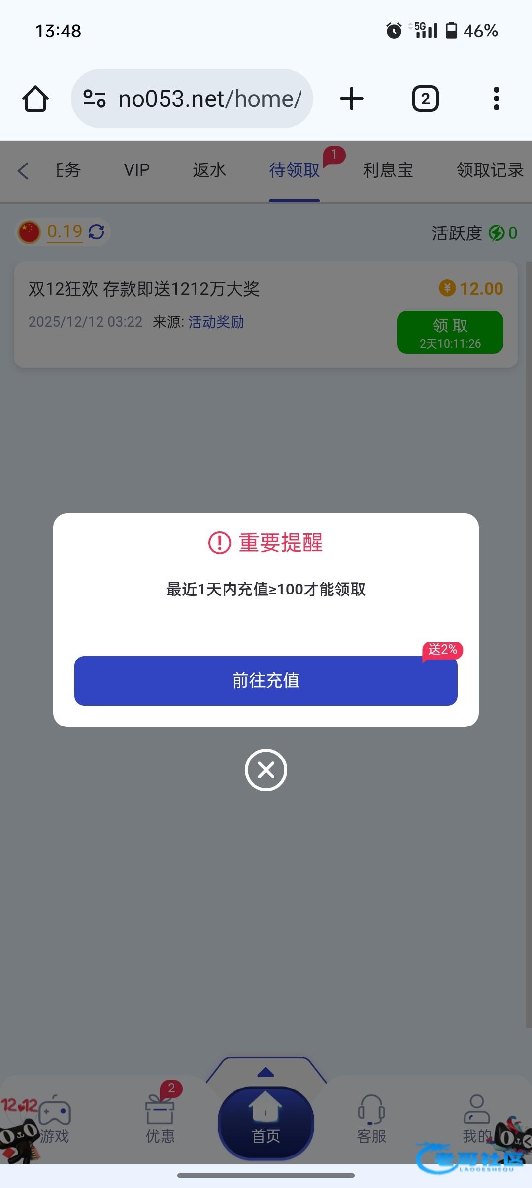 充100才能领取12