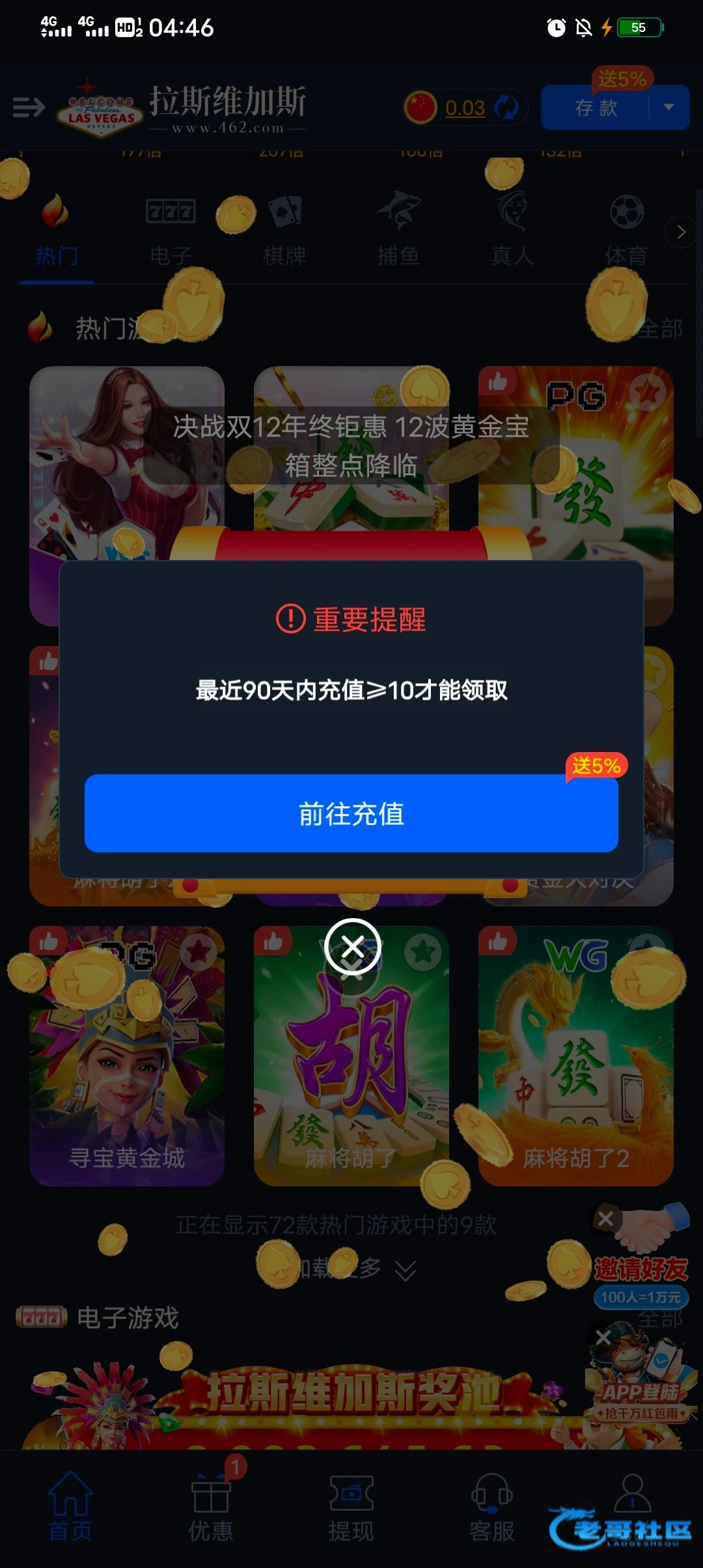 每两个小时一轮,历史充值10+就可以领取,我领了5块,没打出来,麻烦打出来的老哥团个猪脚饭,饿麻了,10起提 地址 462.com
