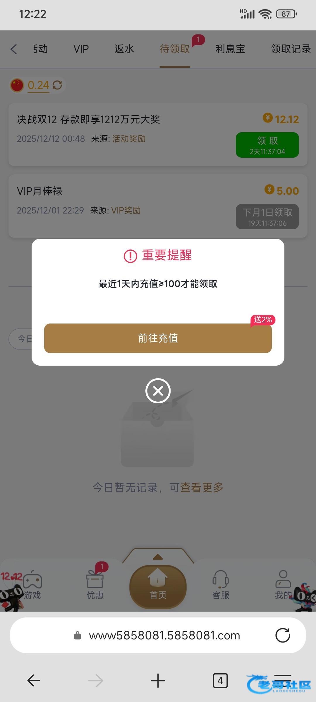 也不管你昨天输了几千,想领12块,对不起,先充100再说,哈哈哈哈 格局打开了属于是。