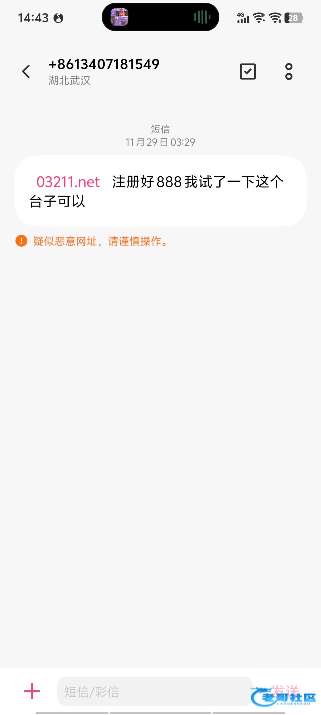 短信内容(03211.net 注册好888我试了一下这个台子可以) 注册找客服领取
