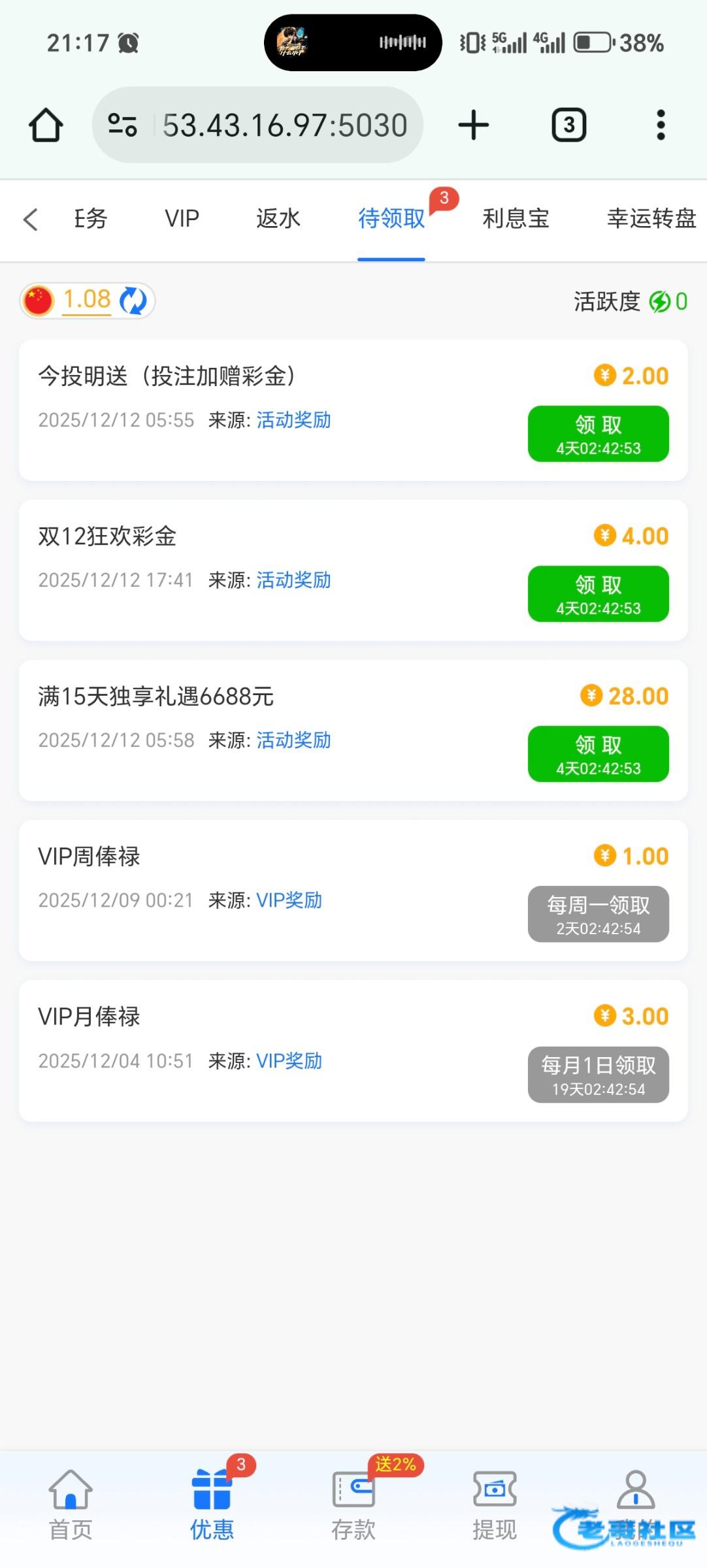 双12彩金还有注册15天彩金有充值打码高的去看看,或者白嫖过的,满50提现,不要充值了电子太拉稀了!地址4.cc