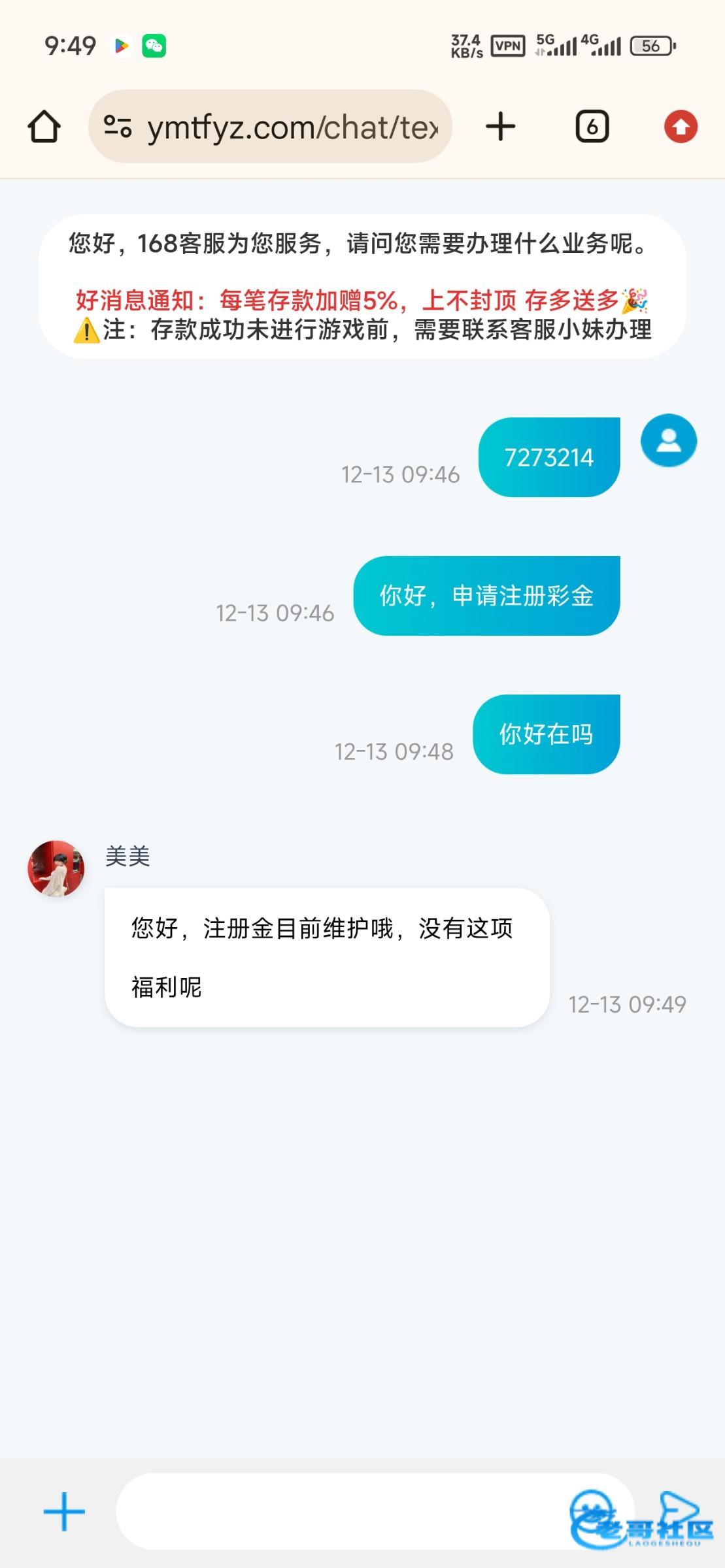 这个垃圾台根本送不起彩金别被骗了,帖子赶紧下了,注册这个,天天给你打电话说充10元就送58彩金,结果你充了就说让领整点红包,10块钱都骗的垃圾台