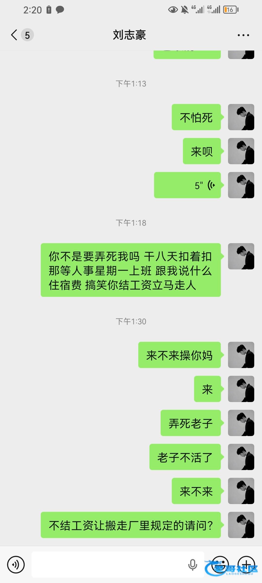 虽然不知道你干了什么总是被老哥们追着骂,但是这种黑人工钱的狗逼不要惯着他,干他妈的!