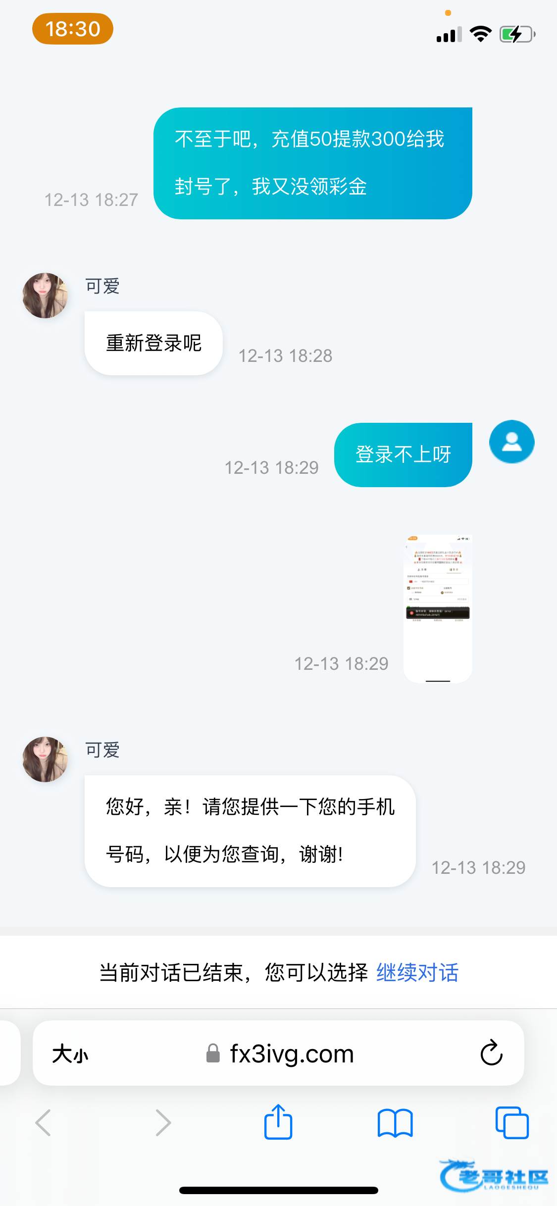 事情是这样的,今天存款10块玩麻将六毛爆了400倍,去提款的时候提示需要累存50才能首次提款。后来又存了40进去。打完流水提款没一会就封号了。找客服问完手机号直接结束对话并且拉黑。没见过这么黑的台子。没领彩金裸打封号