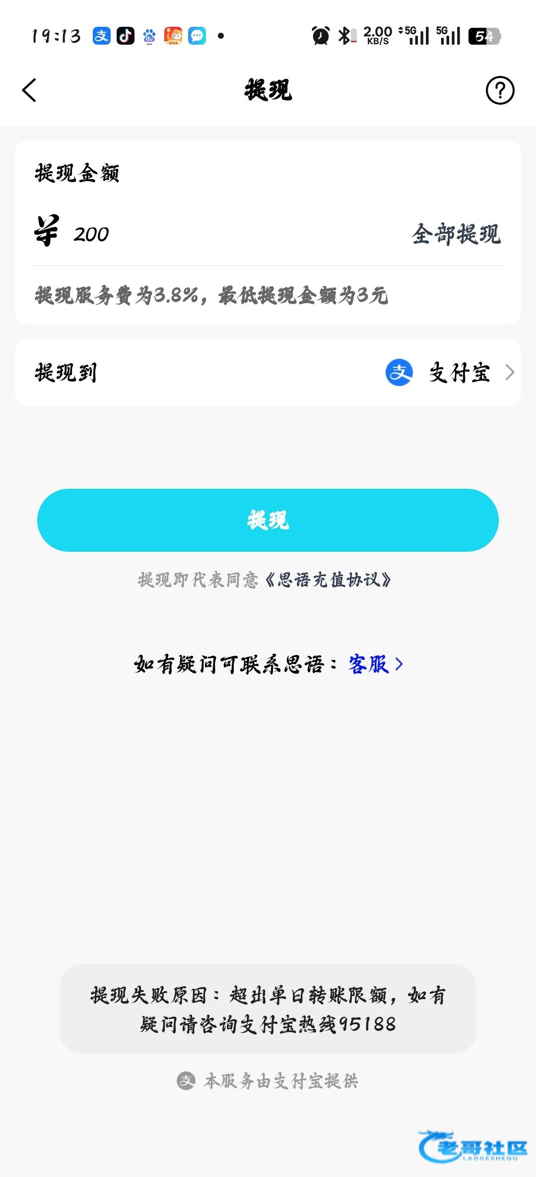 思语提现支付宝限额有没有老哥知道的