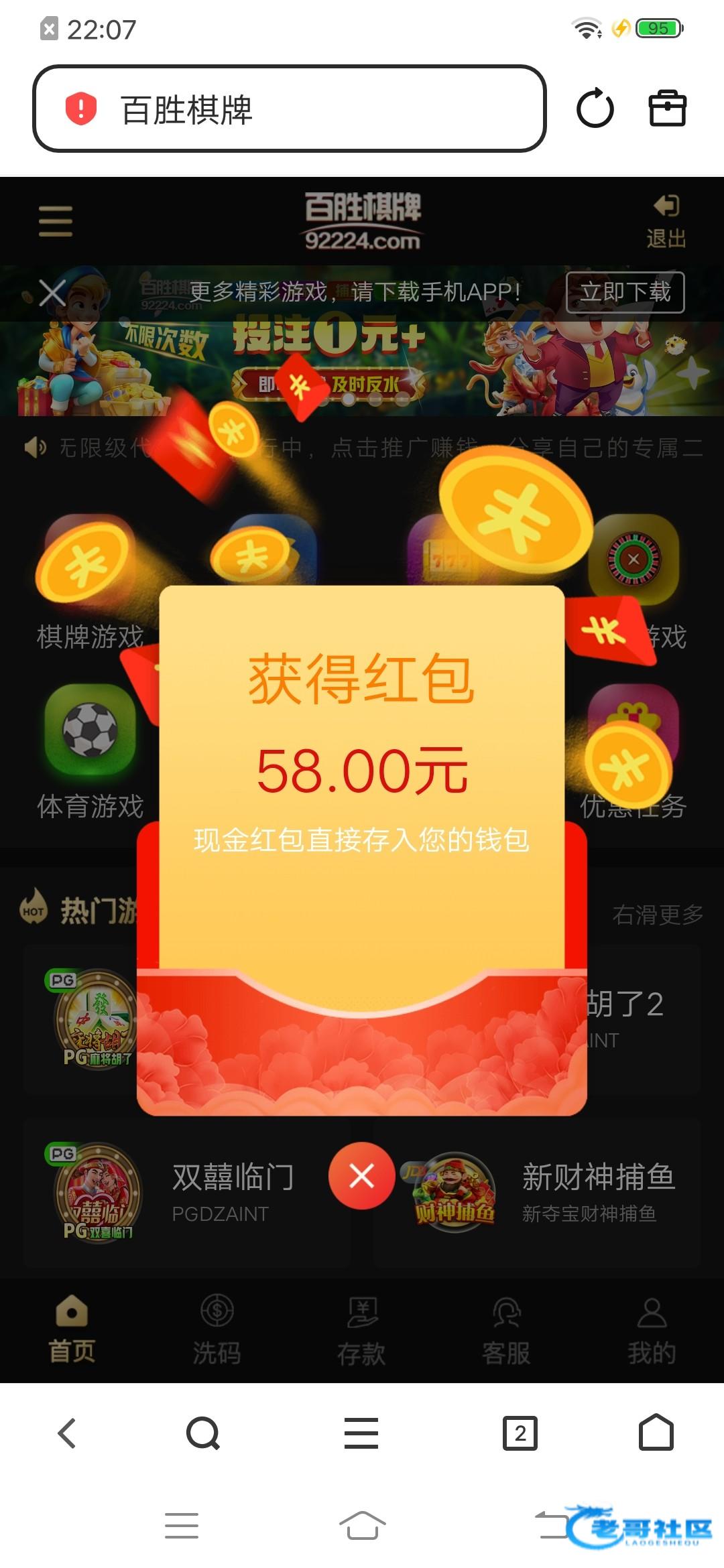 百胜棋牌登录弹窗58彩金,有号的充值过的上去领取平台网址92224.com,922240.vip
