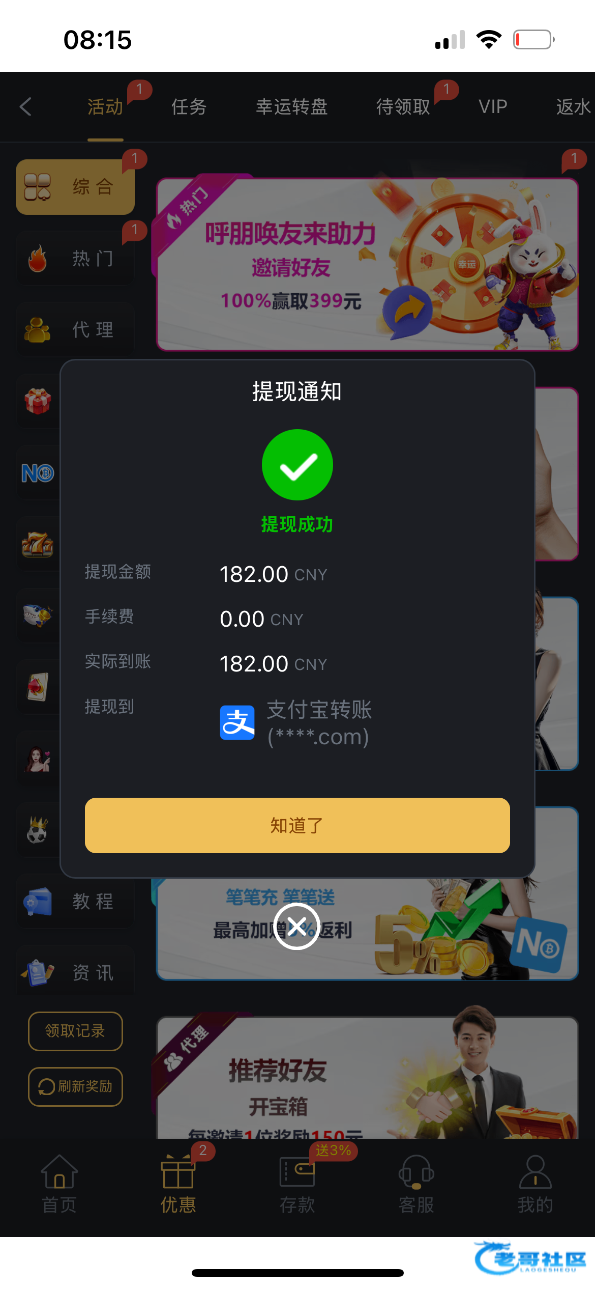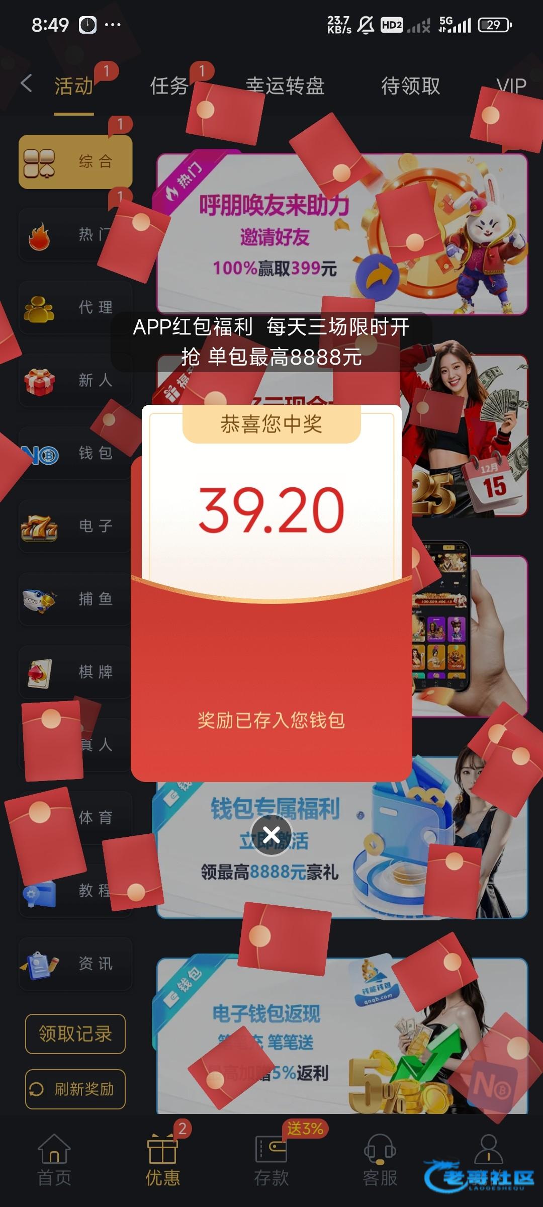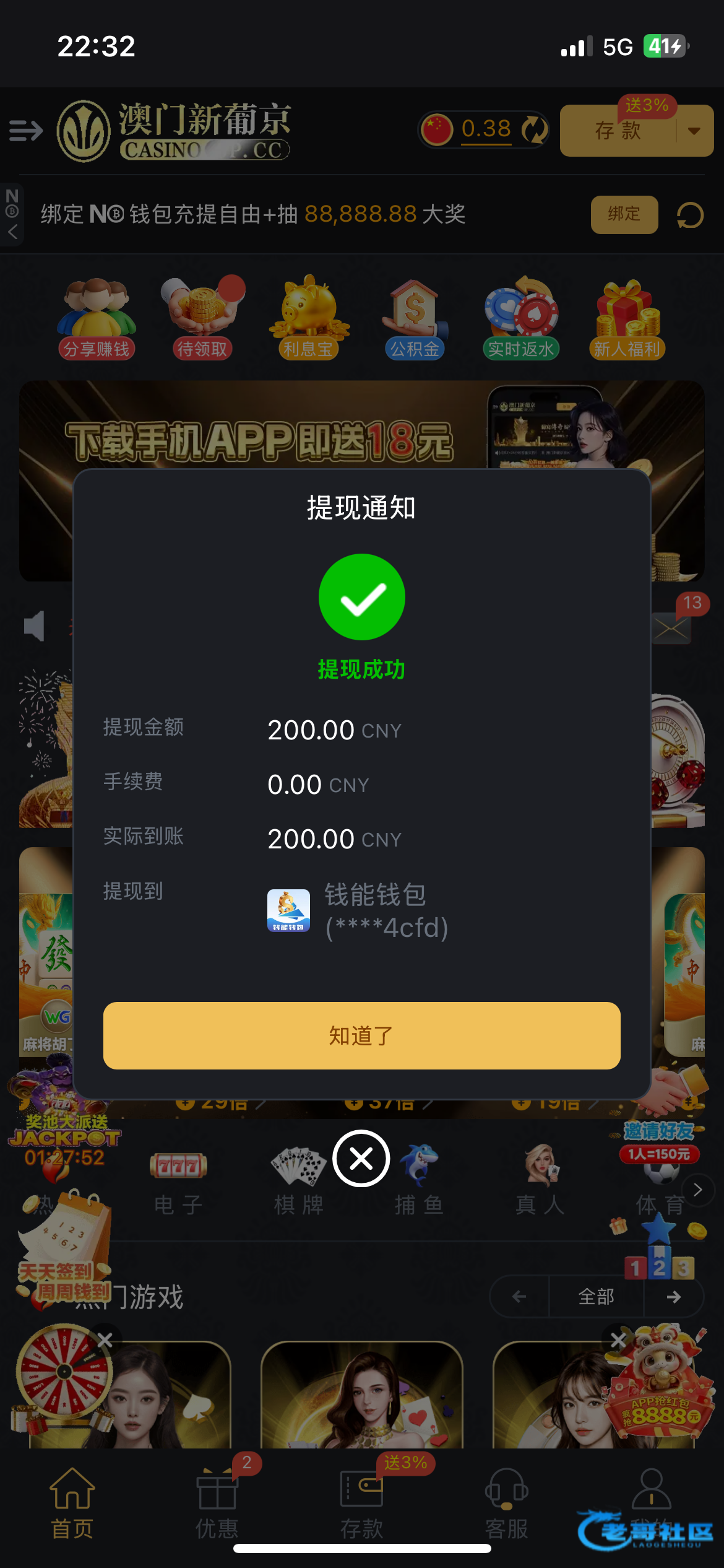 别说我是狗托 充了10块钱app刚一进去就领39块红包 进去1.6拉了几下就到200多 然后卡死了后面重进不知道怎么又进了一次一块六的免费 可惜就只有8块 然后提的no钱包 提不了找客服要了我身份证什么的然后跟我说第一次提现要提现银行卡 后面提了一分钟以内就到了
