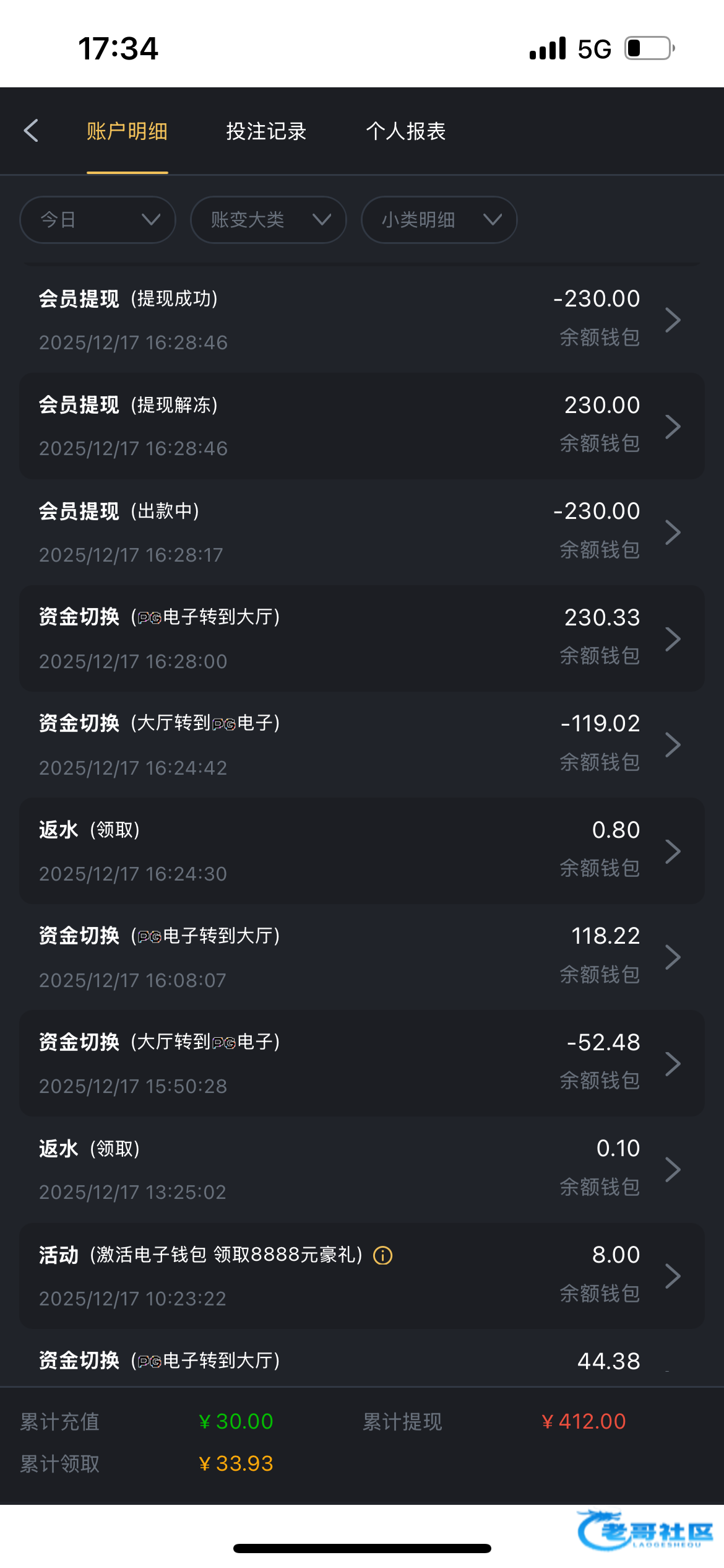 有格局,一共充了30提了400