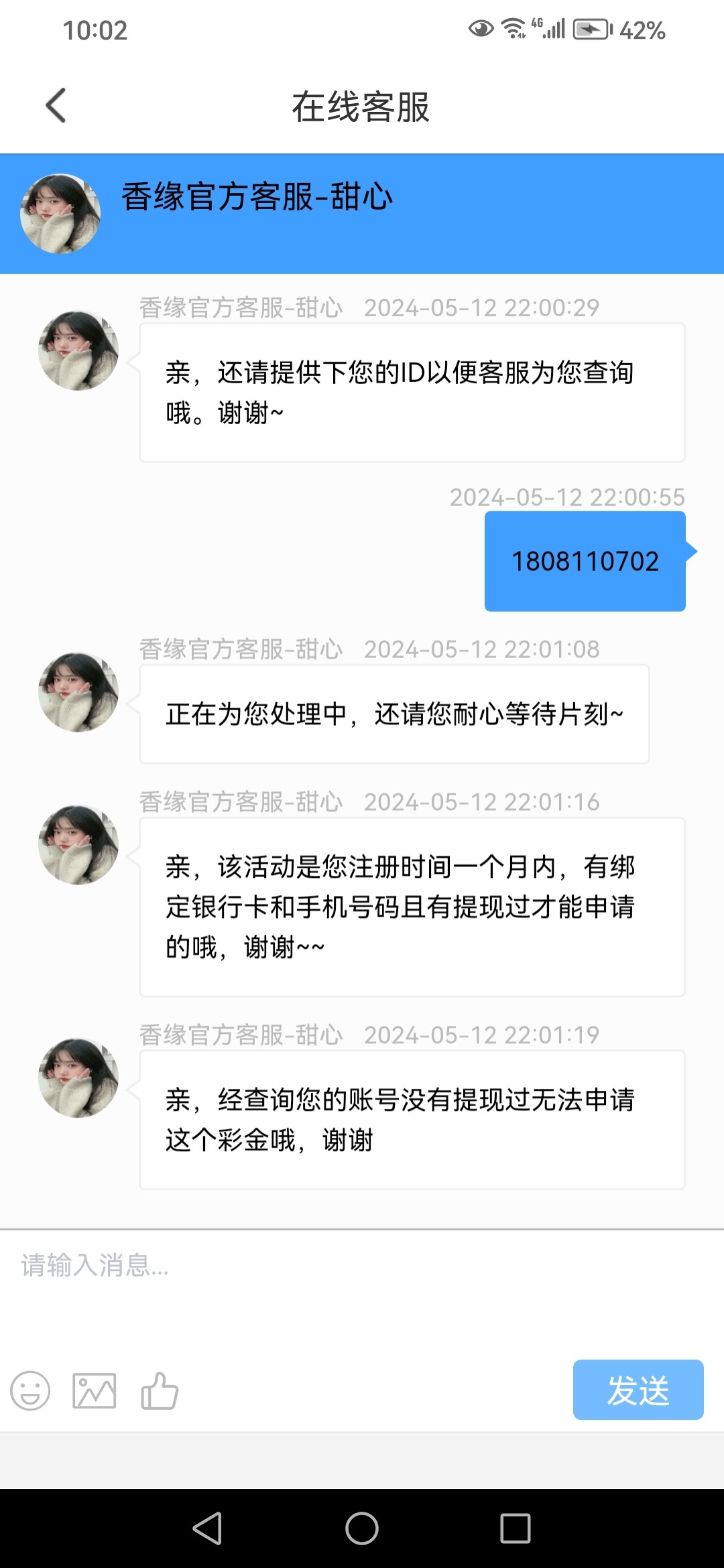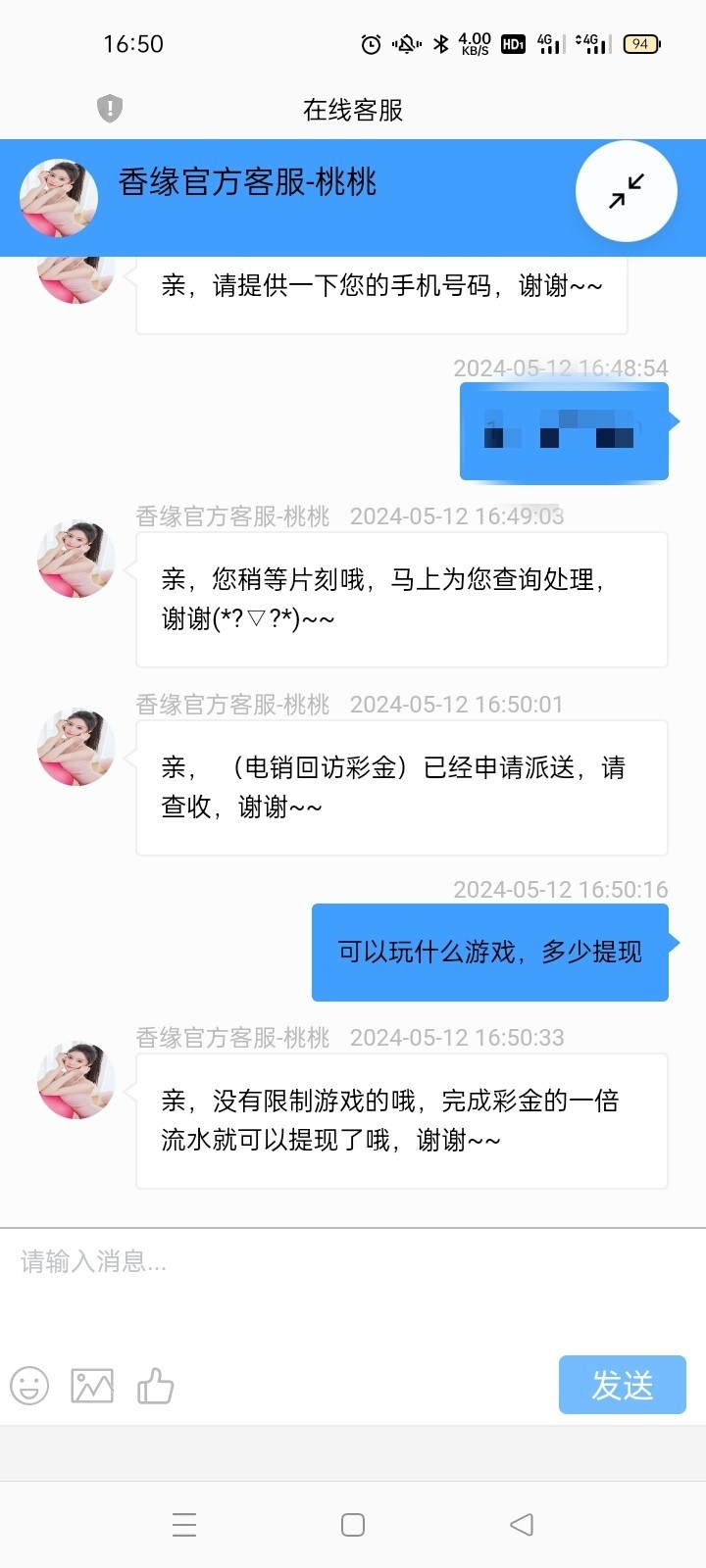 暴力鸟 ▶ 白嫖大魔王 大把地址,这个香缘一个月前注册了,今天才打电话过来领了88,手机号新办的才一两个月 2024-5-12