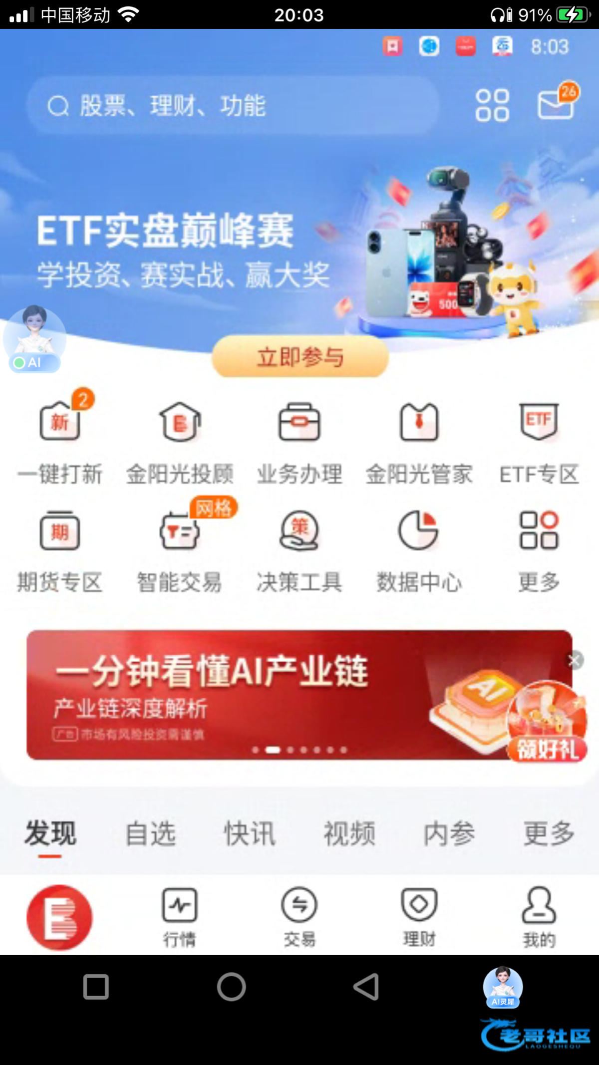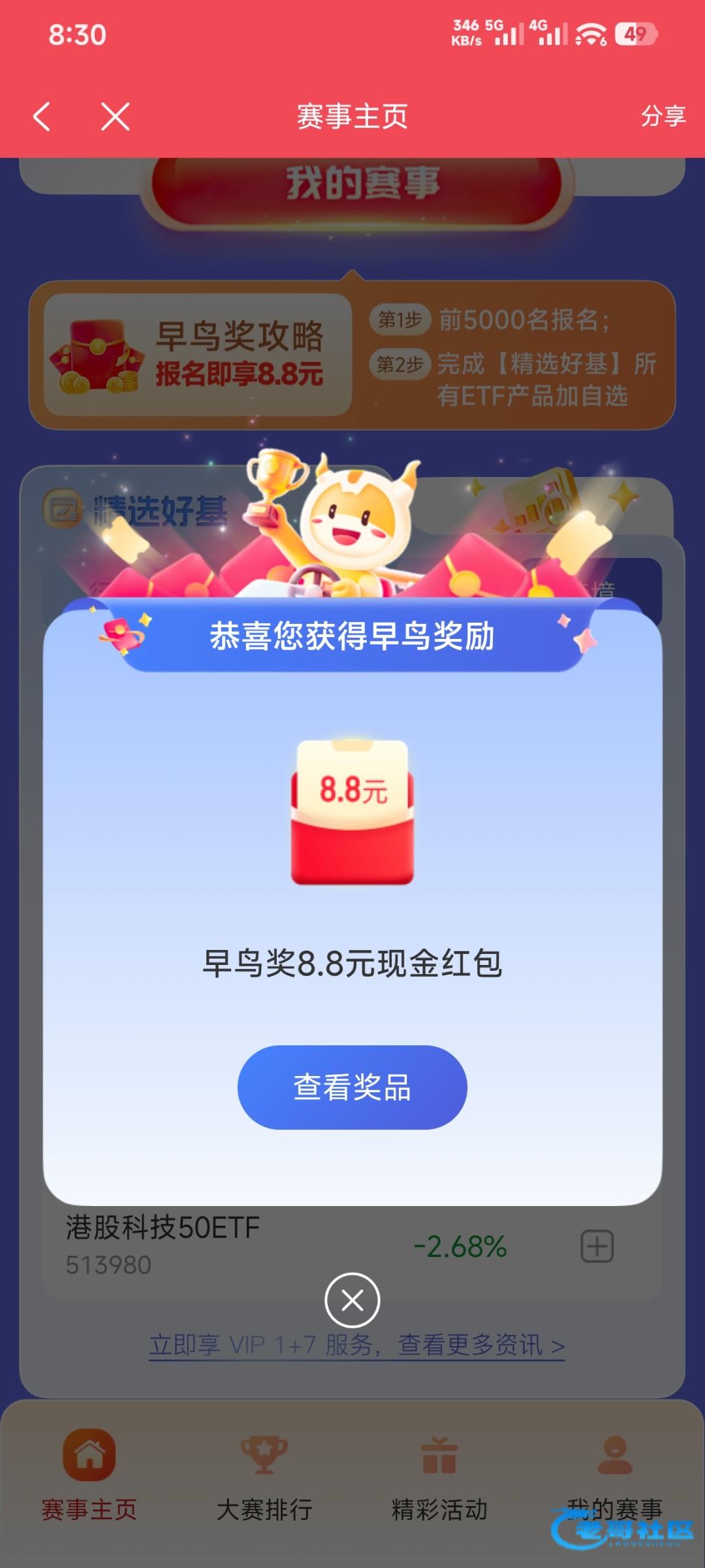 光大证券金阳光首页横幅etf实盘赛,进去报名把下面二十个etf加自选就能微信领8.8