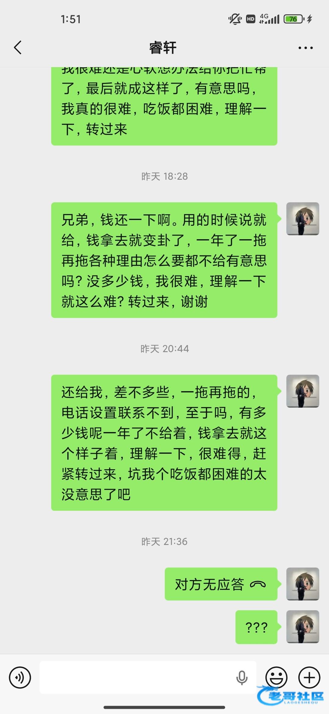 给朋友借钱了对方说过几天还 到时间了我问他还就说还没有钱 我就说那给你几天找给我,现在已经过了一个多月 玩起消失了问别的朋友也不知道他在哪里 发微信不回电话不接 借得也不多就1k多 主要是受不了那种被欺骗的感觉 只能说没钱还也要回信息说一声吧玩消失这种 不知道他在哪里怎么找到对方?目前只有微信还有他电话 有没有老哥遇到这种都是怎么处理的给个法子 有用的留zfb打58猪脚饭