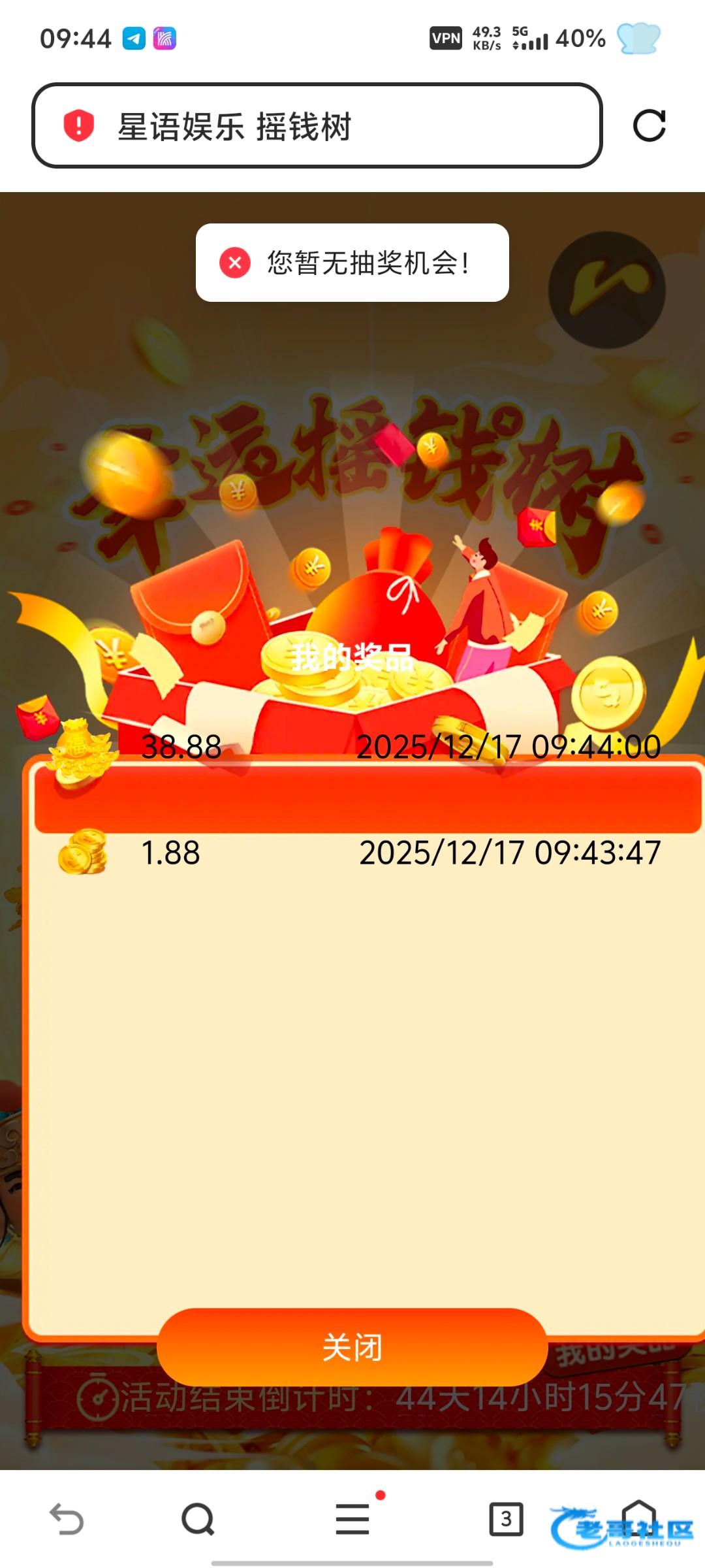 昨天打了星语的记得在首页右下角参加电力转转乐和幸运摇钱树两个活动,地址在论坛首页