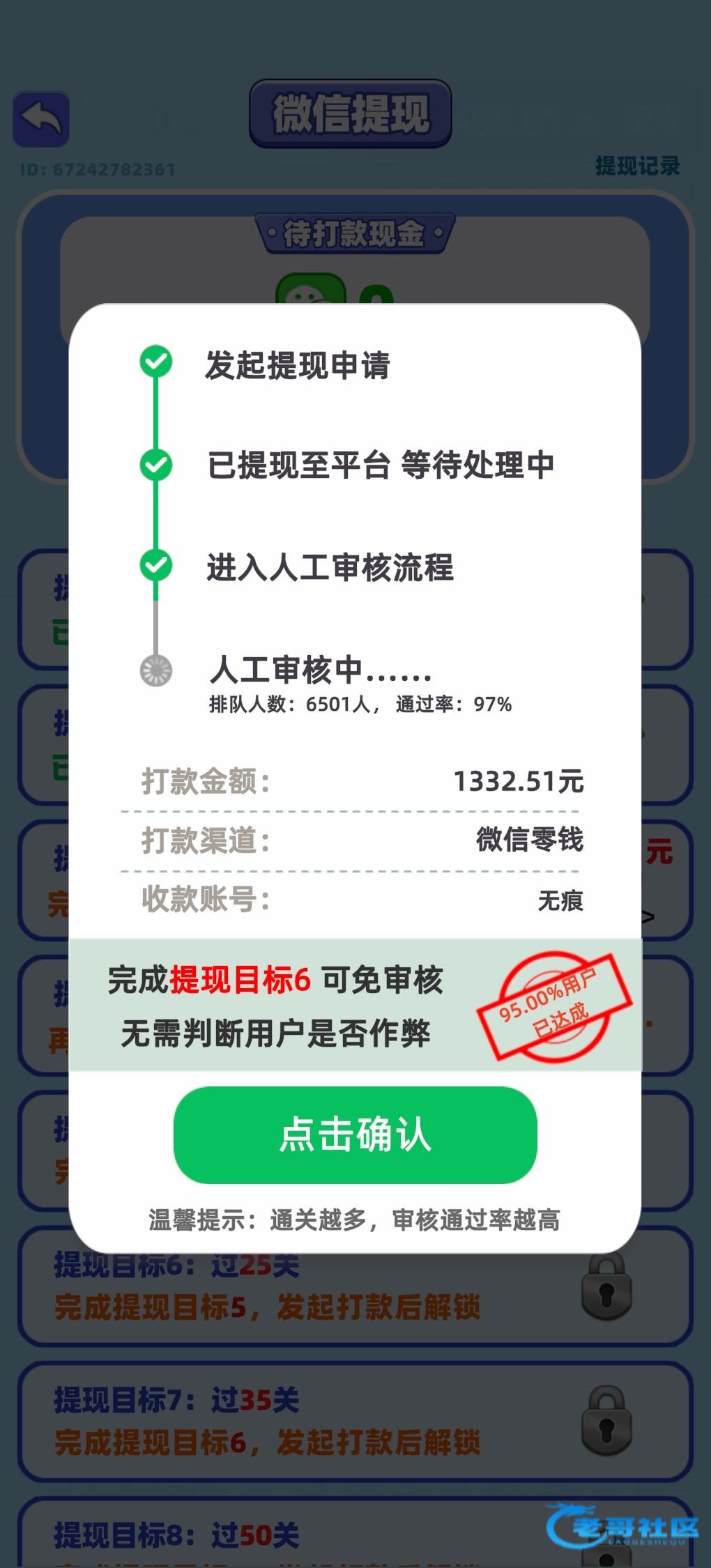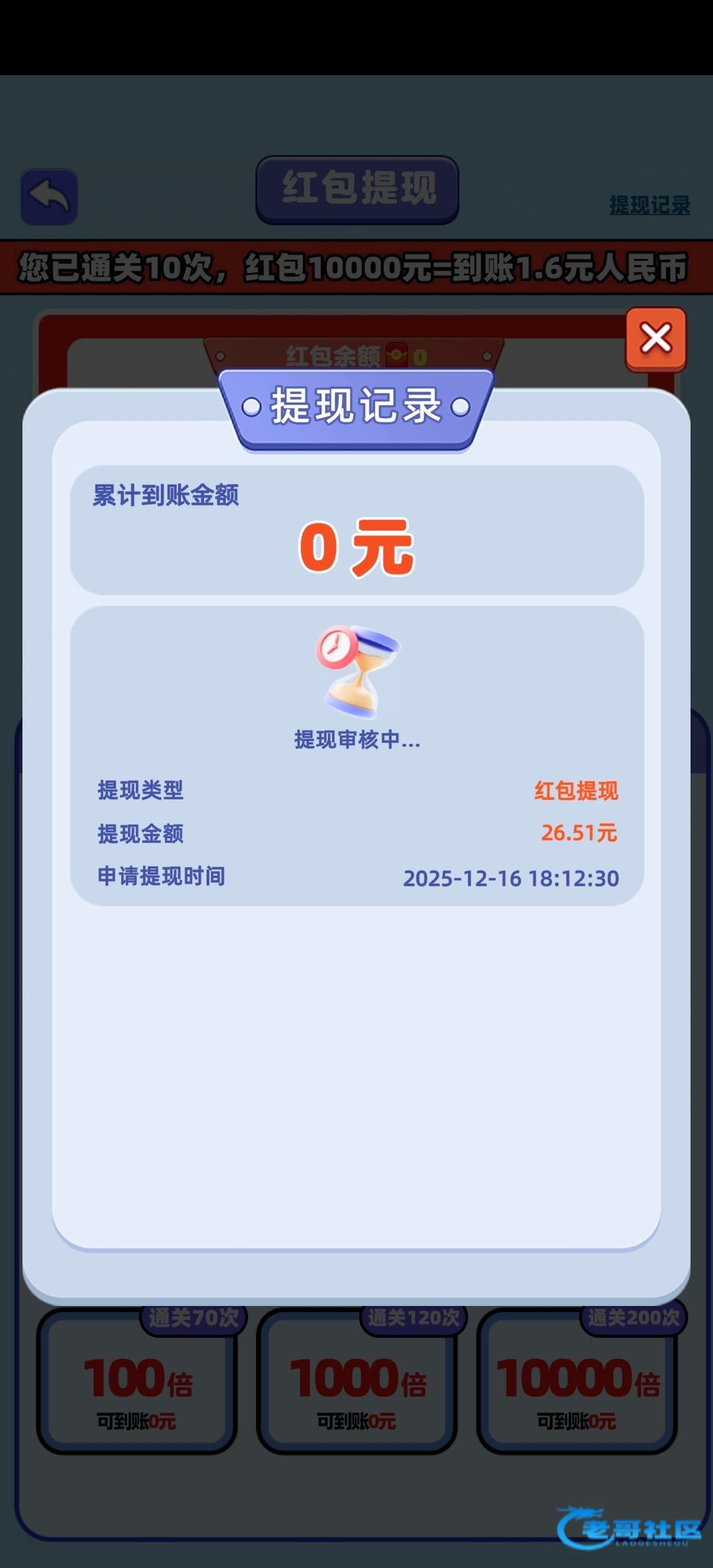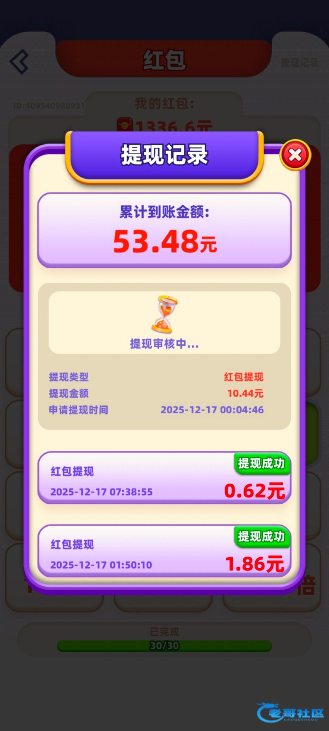 玩了4个小时两个游戏加起来搞了80多,提现10块一直审核中,低于10块秒到